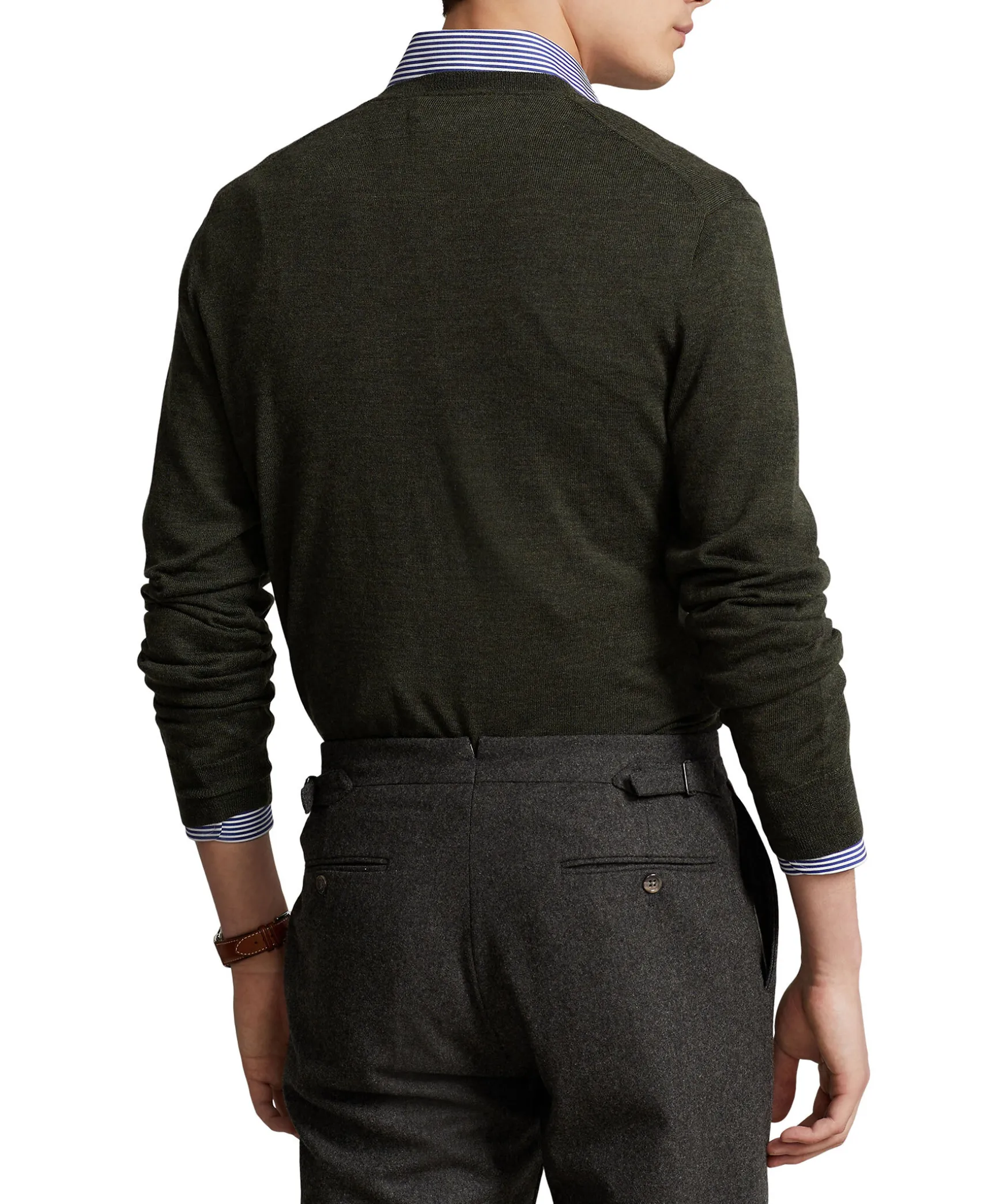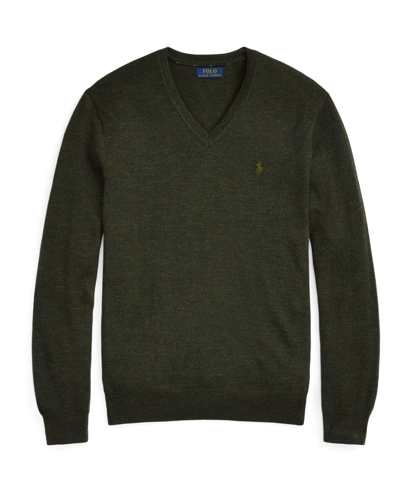 Morkgron, Finstickad Pullover Fran Polo Ralph Lauren. Tillverkad I Merinoull. Broderad Logotyp Pa Brostet, V-Ringning Fram Och Ribbade Muddar I Ringningen, Armslut Och Plaggslut. Slim Fit Passform.