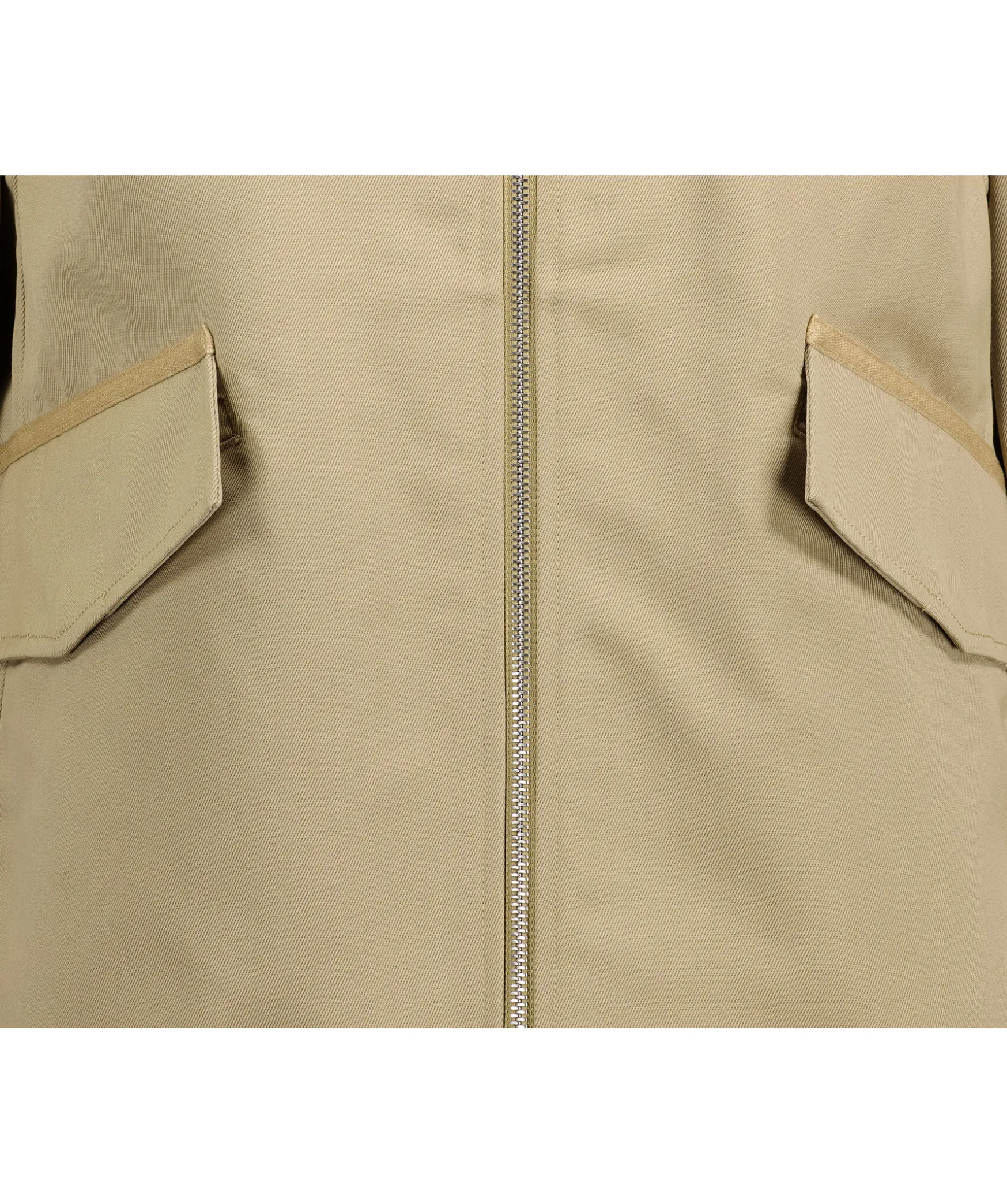 Beige Jacka Med Medelhog Krage Fran Stone Island. Tva Framfickor Med Lock Som Stangs Med En Tryckknapp. Stangs Framtill Med Silverfargad Tvavagsdragkedja Och Har Tva Tryckknappar Pa Kragen. Avtagbar Patch Med Logotyp Pa Vanster Arm, Tryckknapp I Armslut Som Justerar Storleken Pa Armslutet.