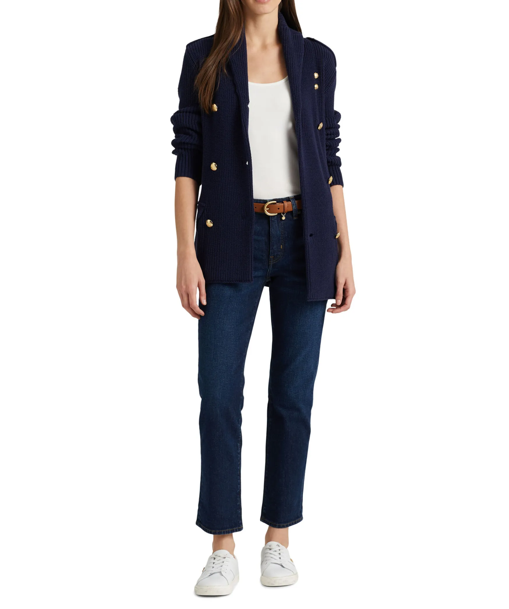 Morkbla, Raka Ankeljeans Fran Lauren Ralph Lauren. Tillverkade I Bekvam, Stretchig Bomull. Ralph Lauren Samarbetar Med Better Cotton™ For Att Forbattra Bomullsodlingen Globalt. Medelhog Midja, Slanka Genom Hoften Och Laret Med Ett Rakt Ben For En Smickrande Passform. Har Balteshallor, Dold Blixtlasgylf Med Knapp Med Logotyp Pa Och Femfickmodell Med Metallnitar. Praglad Patch I Lader Med Logotyp Baktill Vid Hoger Midja. Modellen Ar 178 Cm Och Bar En Storlek 36.