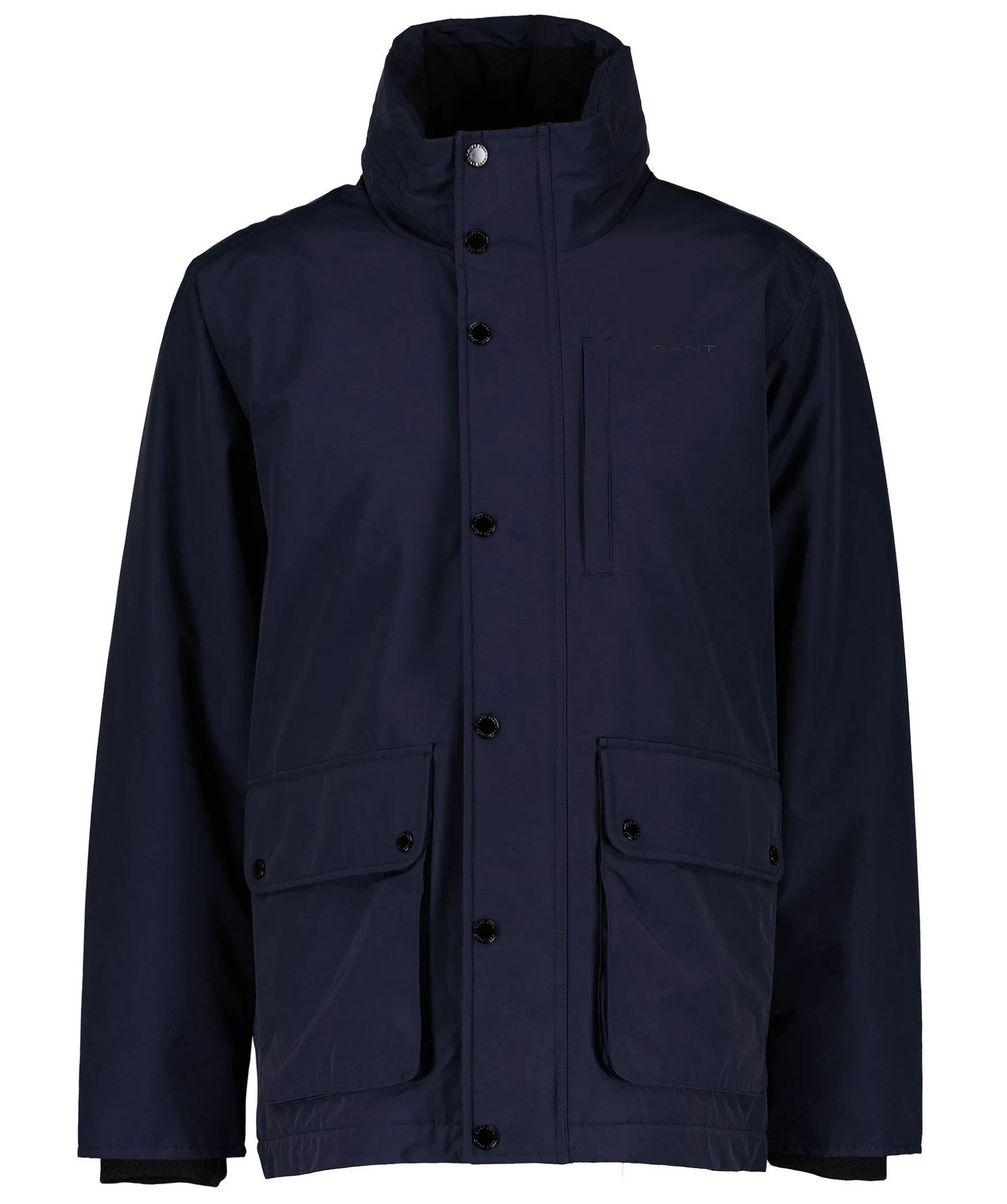 Marinbla, Tunn Och Vattenavvisande Jacka Fran Gant. Normal Passform I En Langd Som Slutar Mitt Pa Laret For Hogsta Vaderskydd. Den Har Tvavagsdragkedja Fram Under En Knappsla Med Tryckknappar Och Fungerar Som Ett Skyddande Lager Vid Ostadigt Vader. Pasydda Fickor Och Brostficka Med Dragkedja. Tillverkad I En Bomullsblandning.