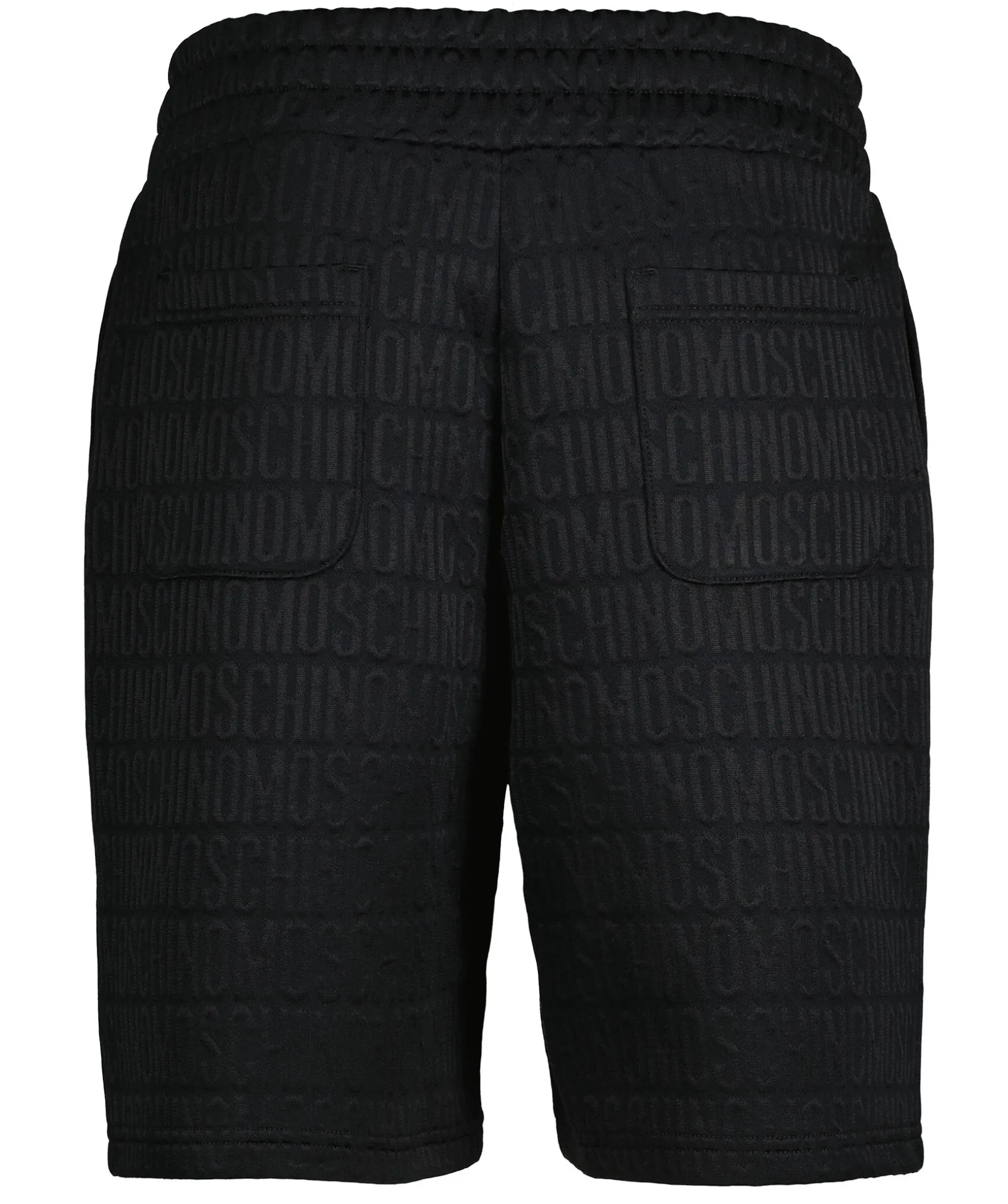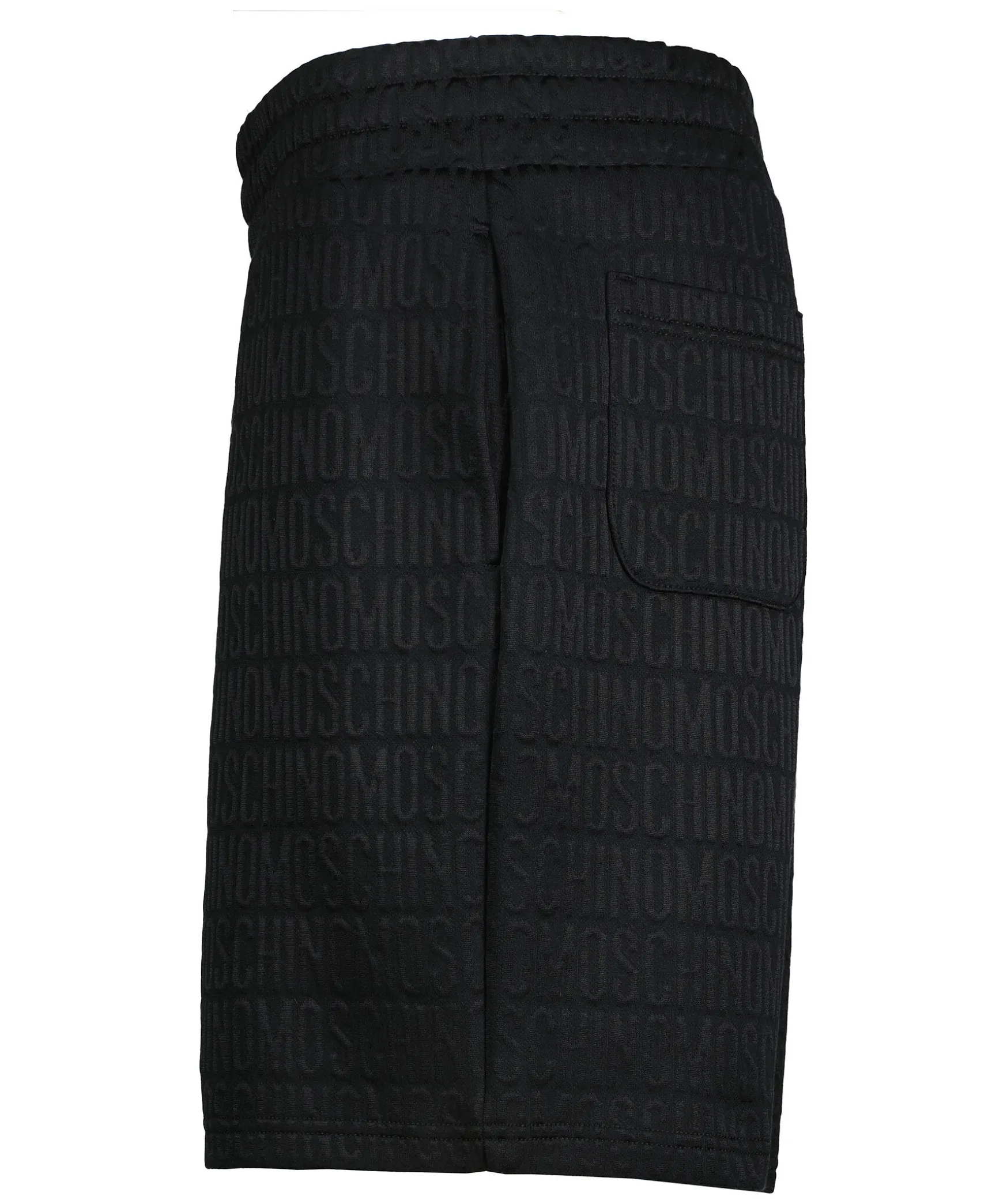 Svarta Mjukishorts Med Svart Monogrammonster Fran Moschino. Dragsko I Midjan. Tva Fickor Framtill, Tva Bakfickor. Tillverkade I Bomullsblandning.
