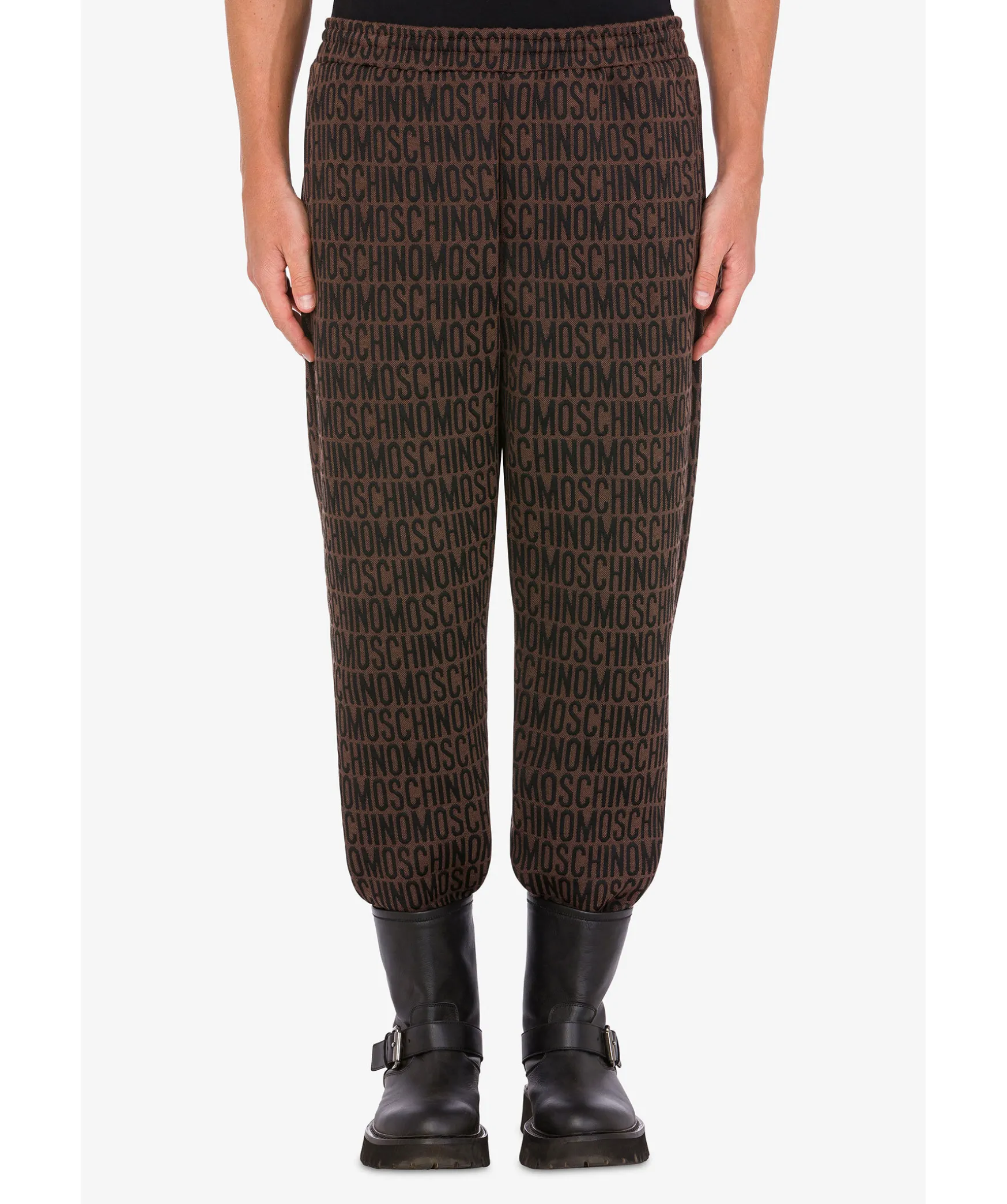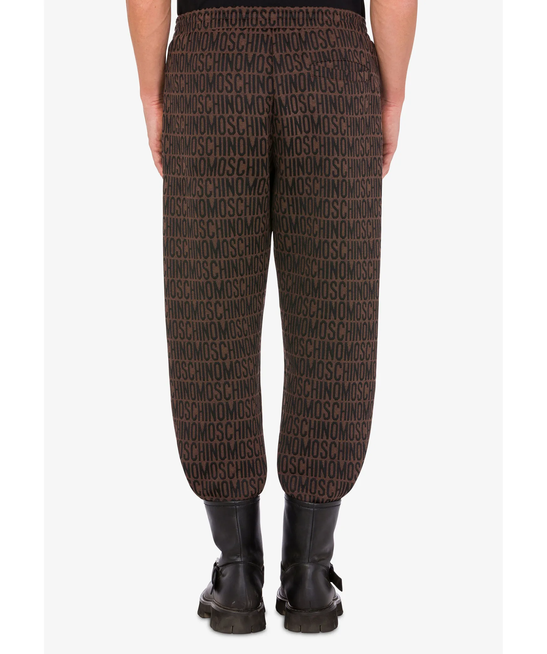 Morkbruna Mjukisbyxor Med Svart Monogrammonster Fran Moschino. Dragsko I Midjan. Tva Framfickor Och En Bakficka. Elastisk Mudd Vid Benslut.