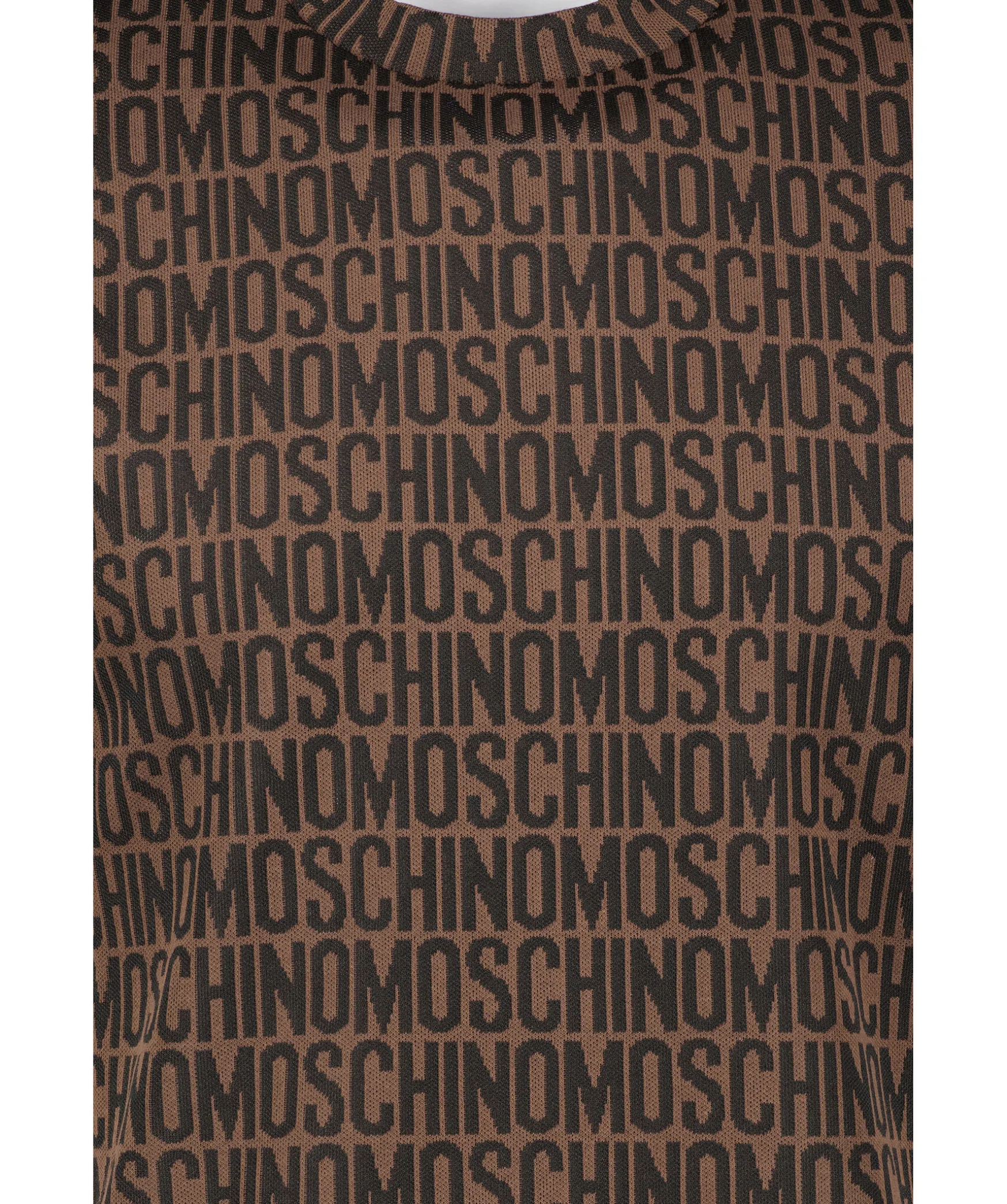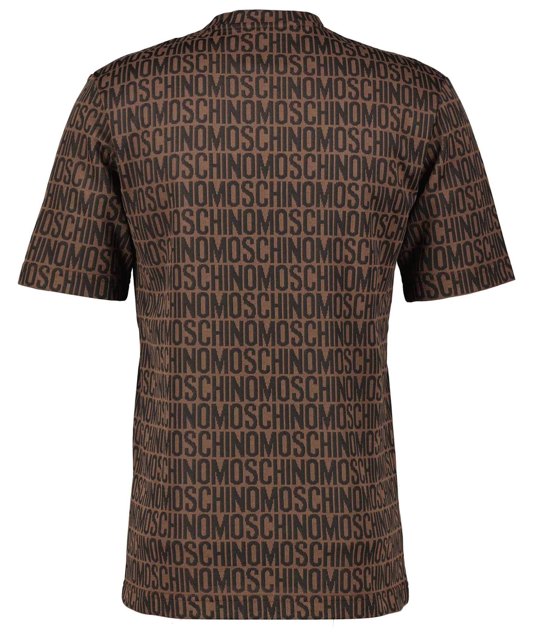 Brun T-Shirt Fran Moschino I En Avslappnad Modell. Monster Med Svarta Logotyper Som Monogram Monster Over Hela Trojan. Tillverkad I Bomullsblandning.