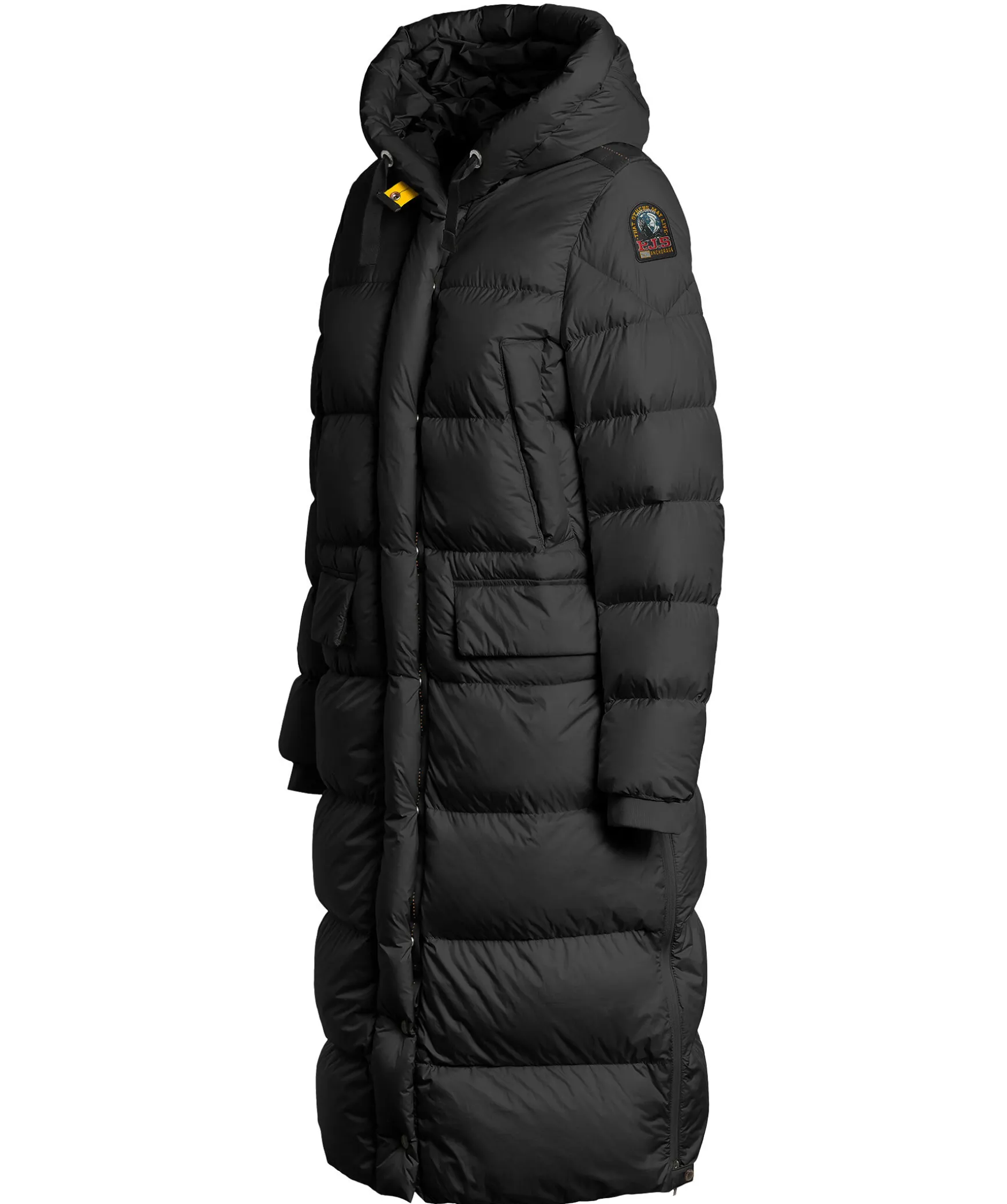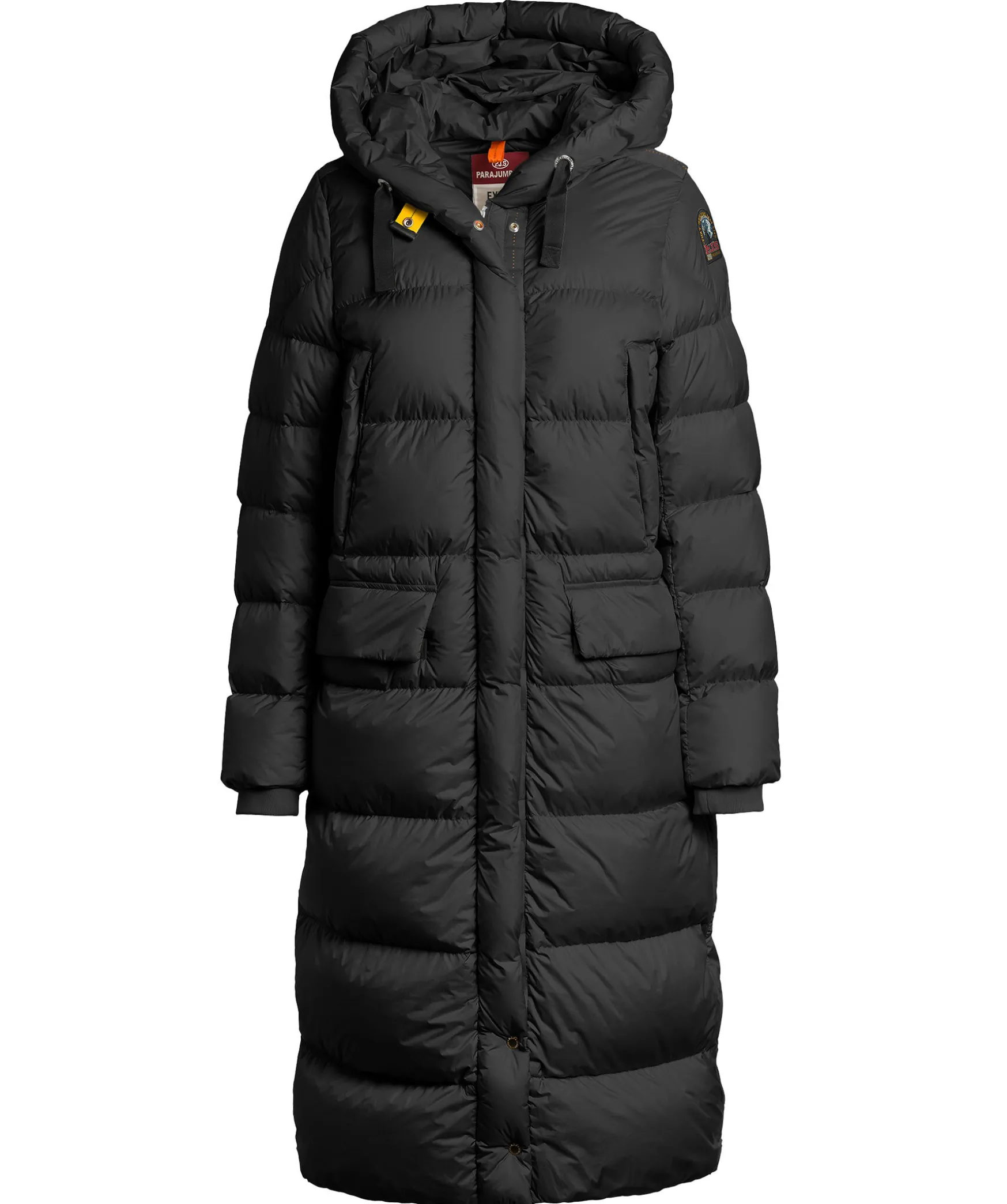 Svart Lang Dunjacka Fran Parajumpers. Quiltad Och Dunfylld. Jackan Stangs Med En Tvavagsdragkedja Och Tryckknappar. Tva Brostfickor, Tva Framfickor. Och Tva Innerfickor. Slits Med Dragkedja Pa Jackans Bada Sidor. Luva Med Dragsko Och Elastisk Mudd Vid Armslutet.