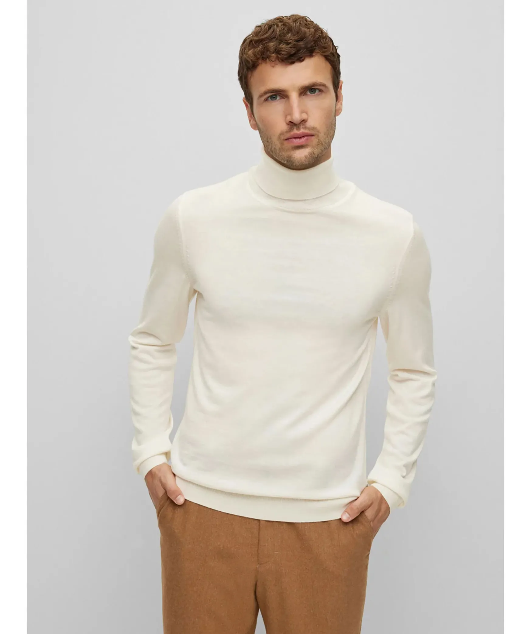 Vit Troja I Slim Fit Fran Boss Black. Tillverkad I Luftig Jungfruull For Anvandning Aret Runt. Troja Har Polokrage Samt Ribbade Muddar Vid Arm- Och Plaggslut.