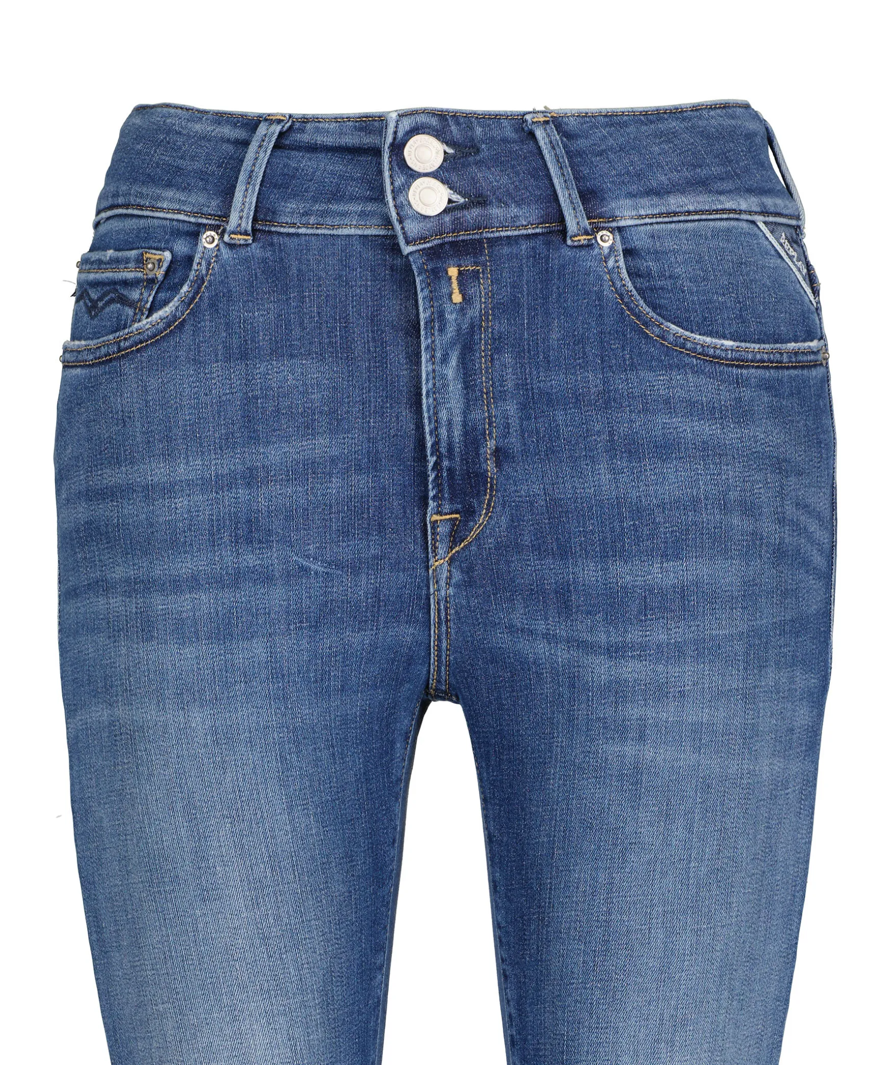 Blaa Jeans Med Utsvangda Benfran Replay. Byxorna Ar I Femficksmodell Och Har Dragkedja Och Dubbel Knappgylf. Tillverkade I En Bomullsblandning.
