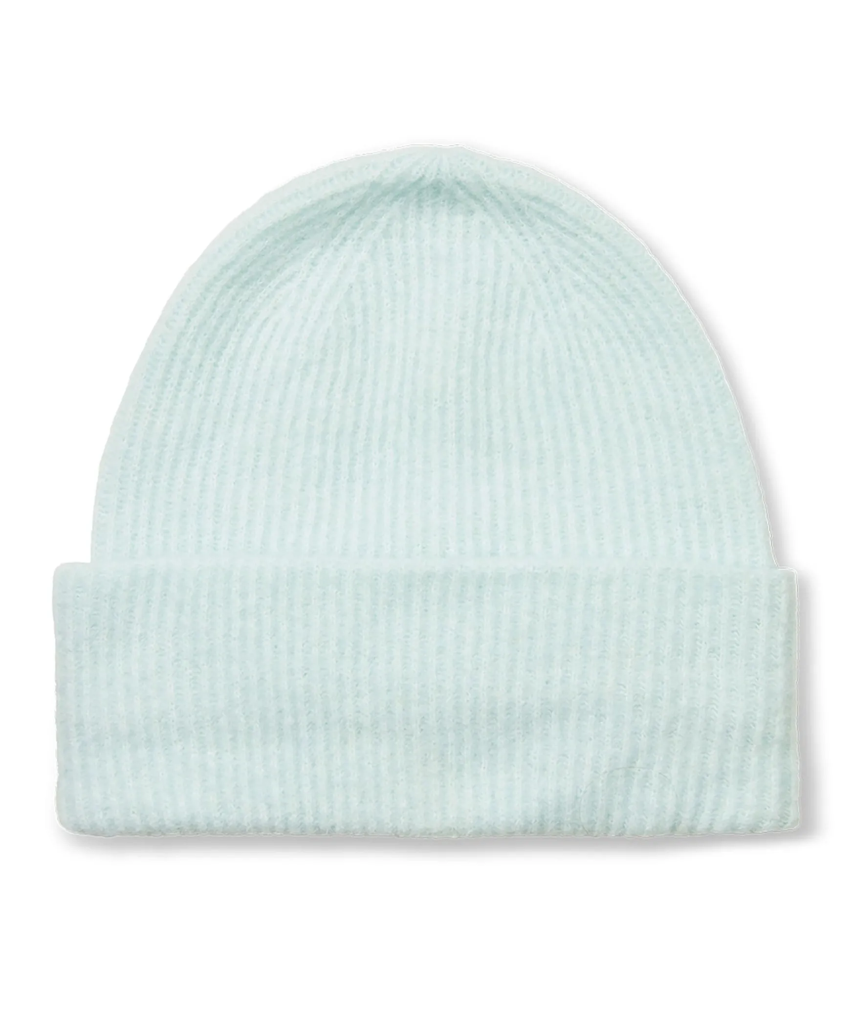 Ljusbla Melerad Stickad Mossa Fran Samsoe Samsoe. Har En Uppvikt Kant Och Ar Ribbstickad. Tillverkad I En Ullmix. Onesize.