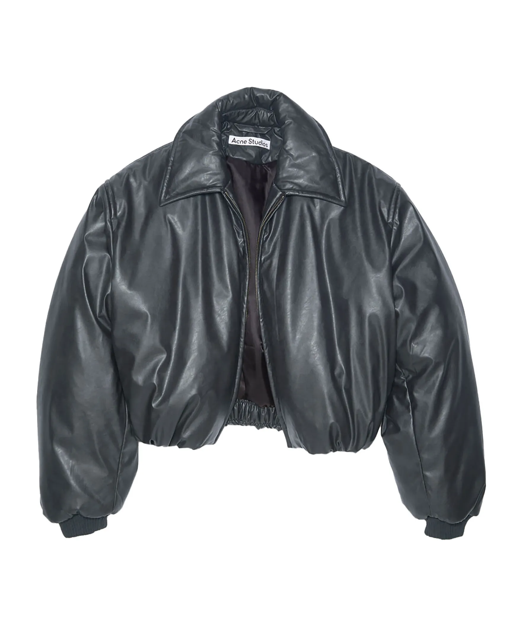 Morkbrun Laderjacka I Bomber Modell Fran Acne Studios. Stangs Framtill Med Dragkedja. Ribbstickade Muddar Vid Armslut. Spetsig Krage. Avslappnad Passform. Droppade Axlar. Fickor I Sidorna.