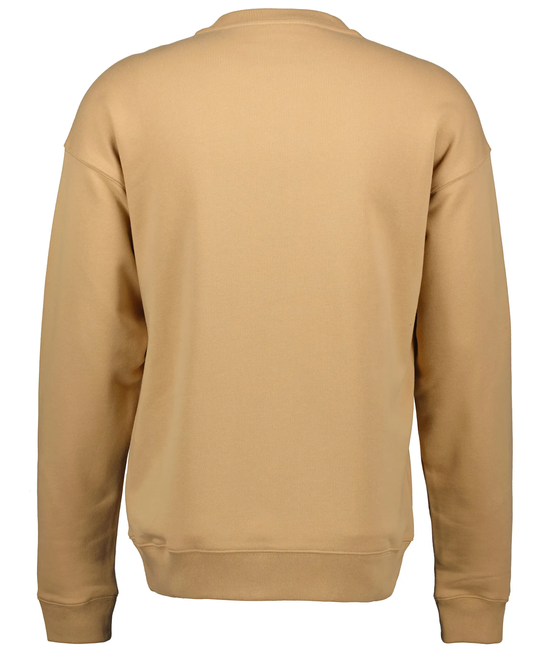 Beige Sweatshirt Fran Moschino. Stor Logotyp I Svart Over Brostet. Rundad Halsringning, Ribbstickade Muddar Pa Halsringningen, I Armslut Och Plaggslut. Tillverkad I 100% Bomull.