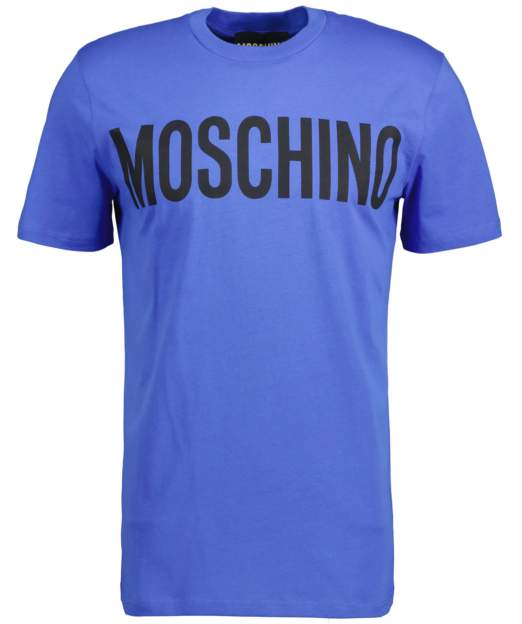 Bla T-Shirt Fran Moschino. Gjord I 100% Bomull. Trojan Har Ett Svart Tyck Med Logga Pa Brostet. Ribbad Mudd Vid Halsringningen.