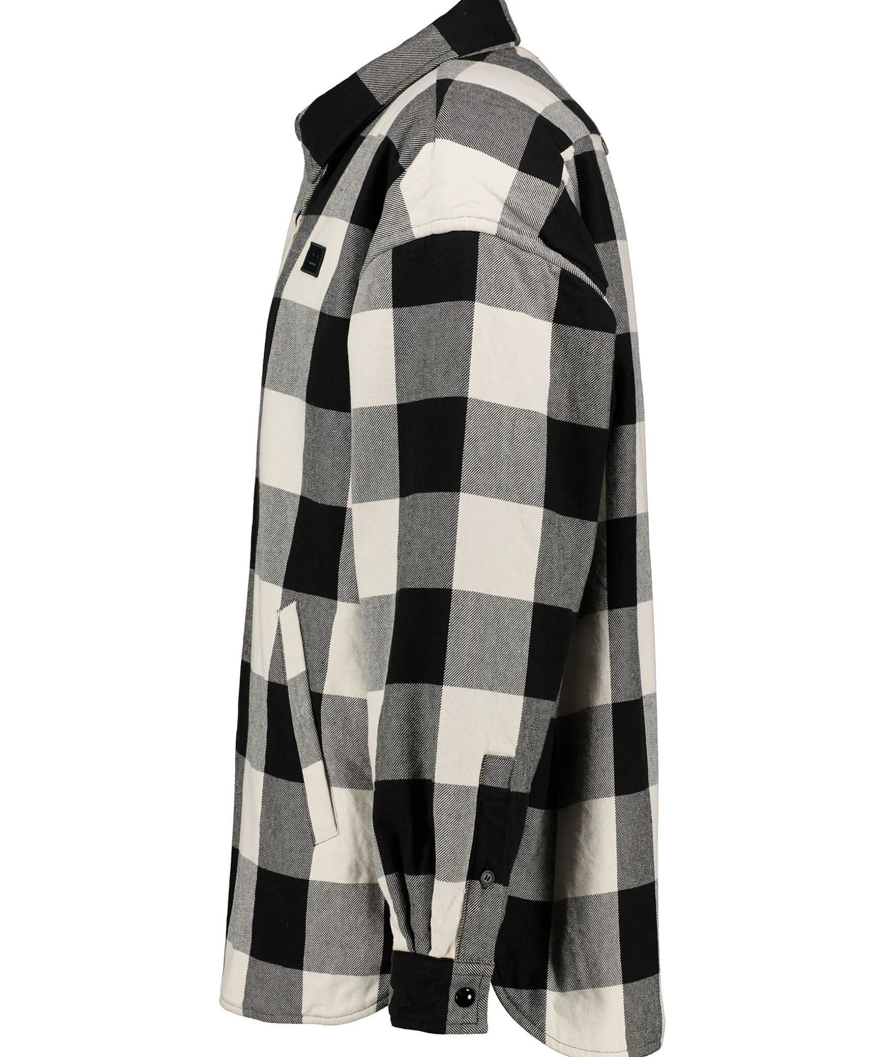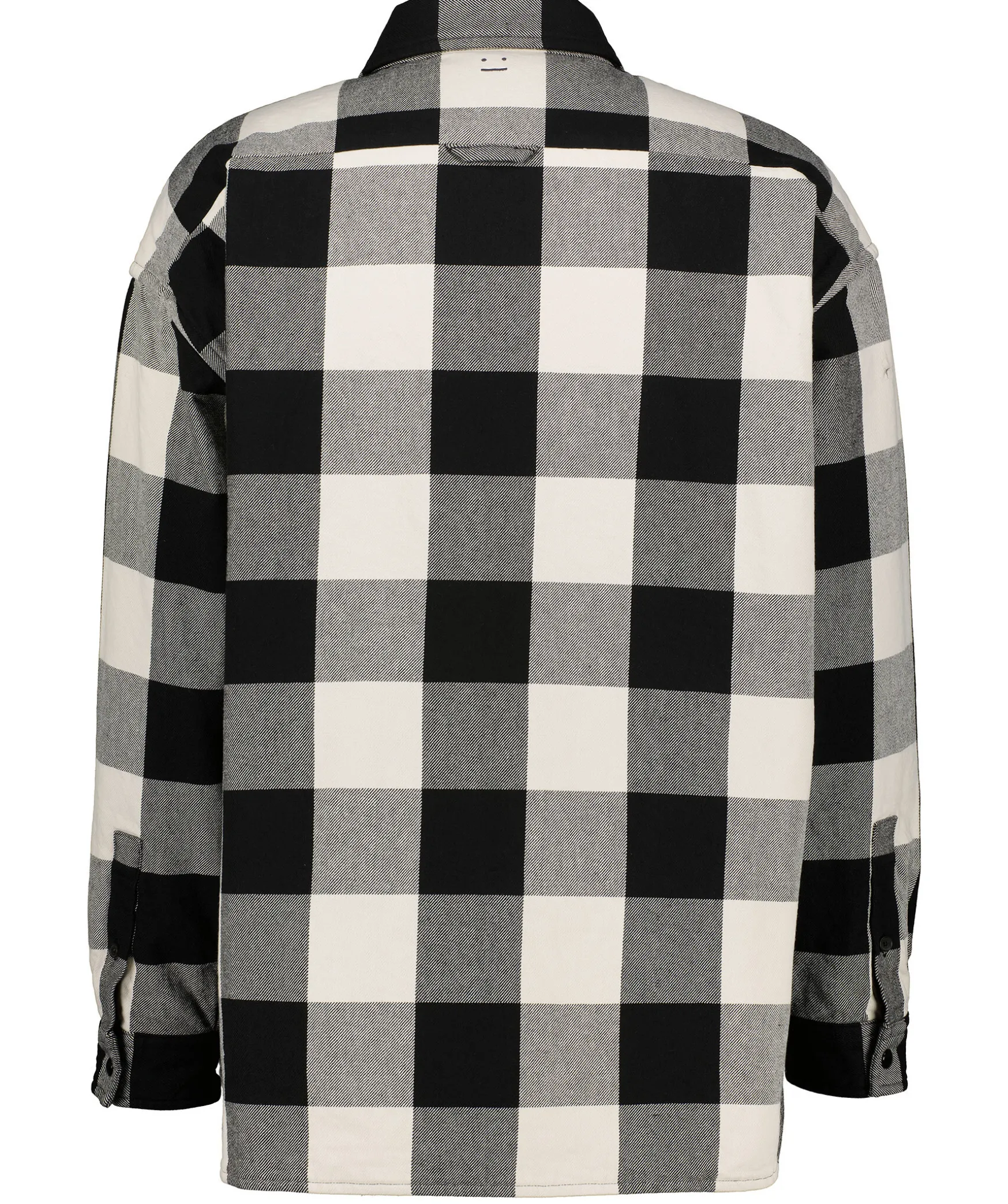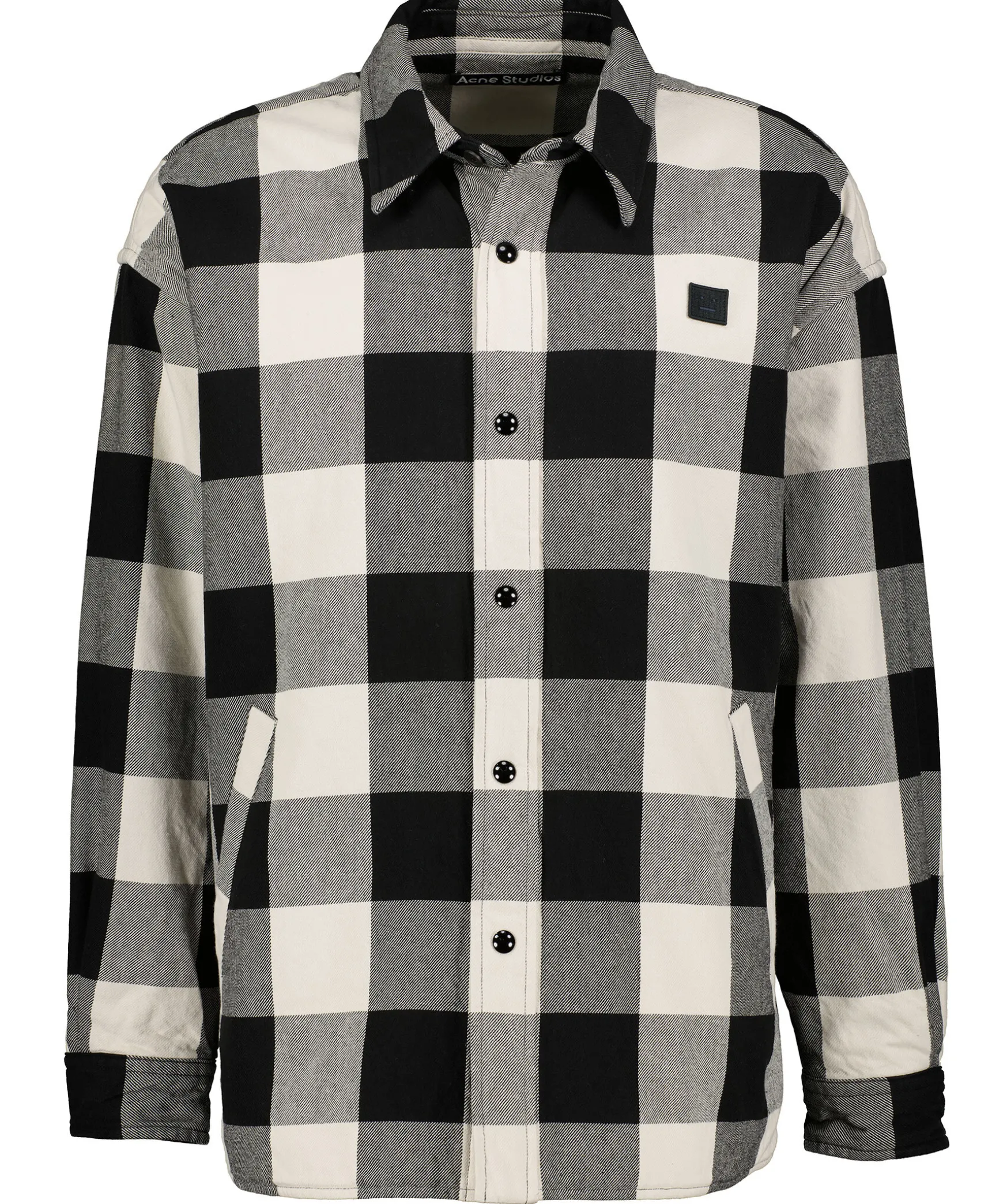 Svart Och Vit Rutig Vadderad Overshirt Fran Acne Studios. Stangs Framtill Med Tryckknappar. Broderad Face-Logo Pa Vanster Brost. Tva Fickor Framtill. Enkla Manschetter Med Tryckknapp. Locker Loop Baktill Pa Ryggen. Avslappnad Passform.