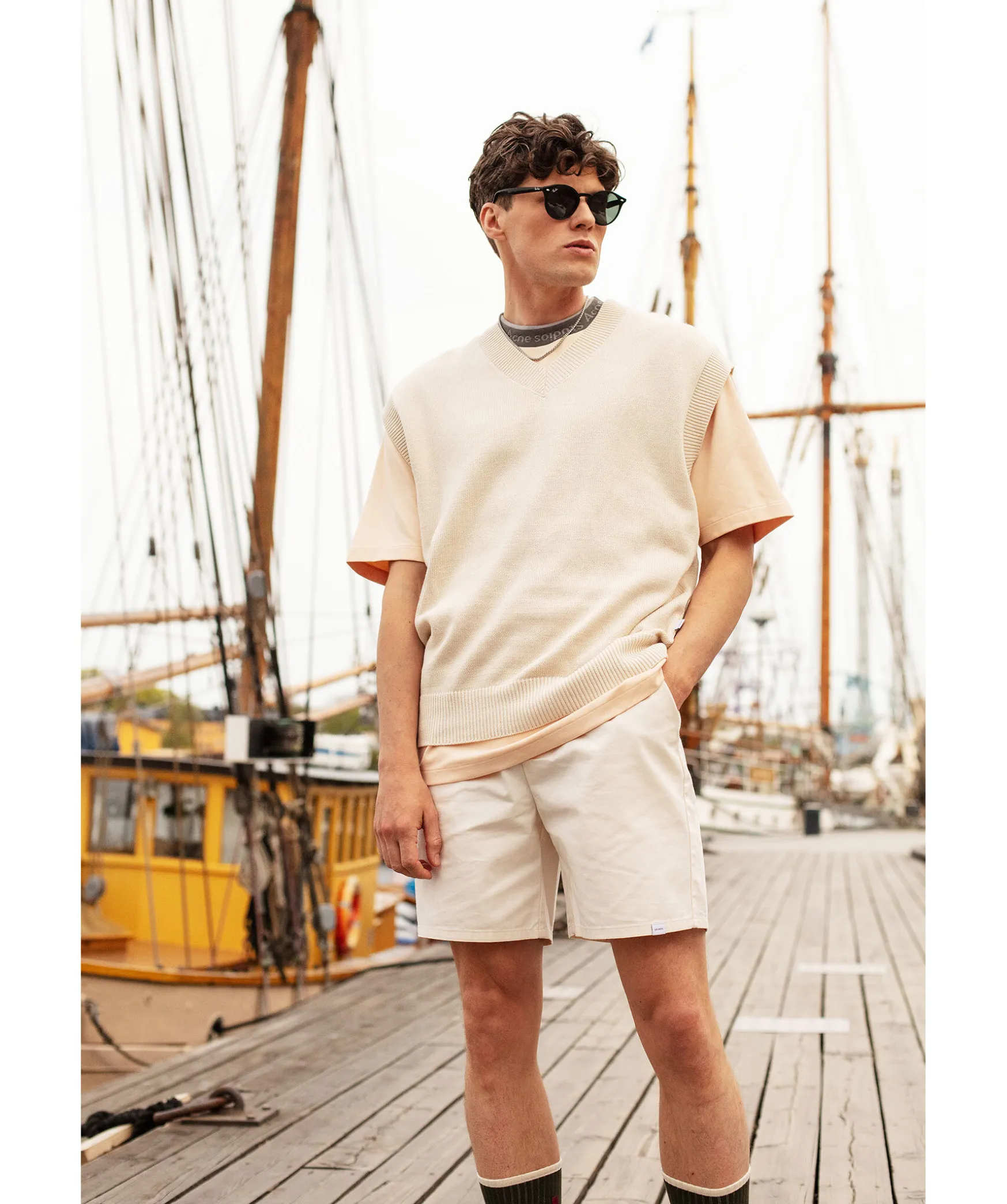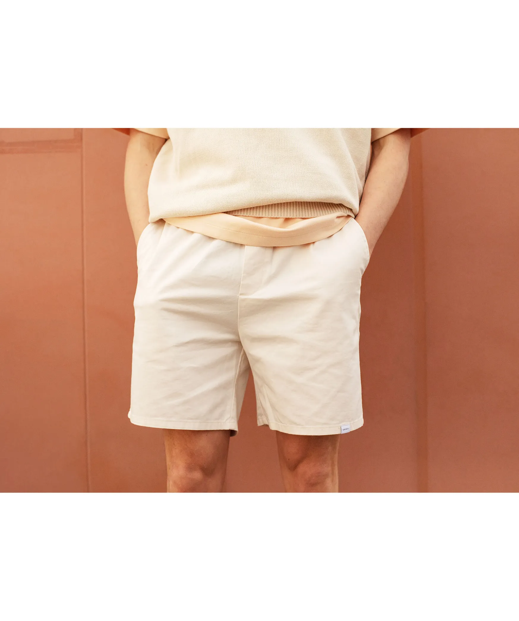 Benvita Bomullstwill Shorts Fran Les Deux. Dragsko I Midjan Och Sidfickor. Shortsen Ar Av 100% Ekologisk Bomull. Tva Fickor Framtill Och En Ficka Baktill Pa Hoger Sida. Broderad Logotyp Vid Bakfickan. Modellen Ar 185Cm Och Har Pa Sig Storlek M.