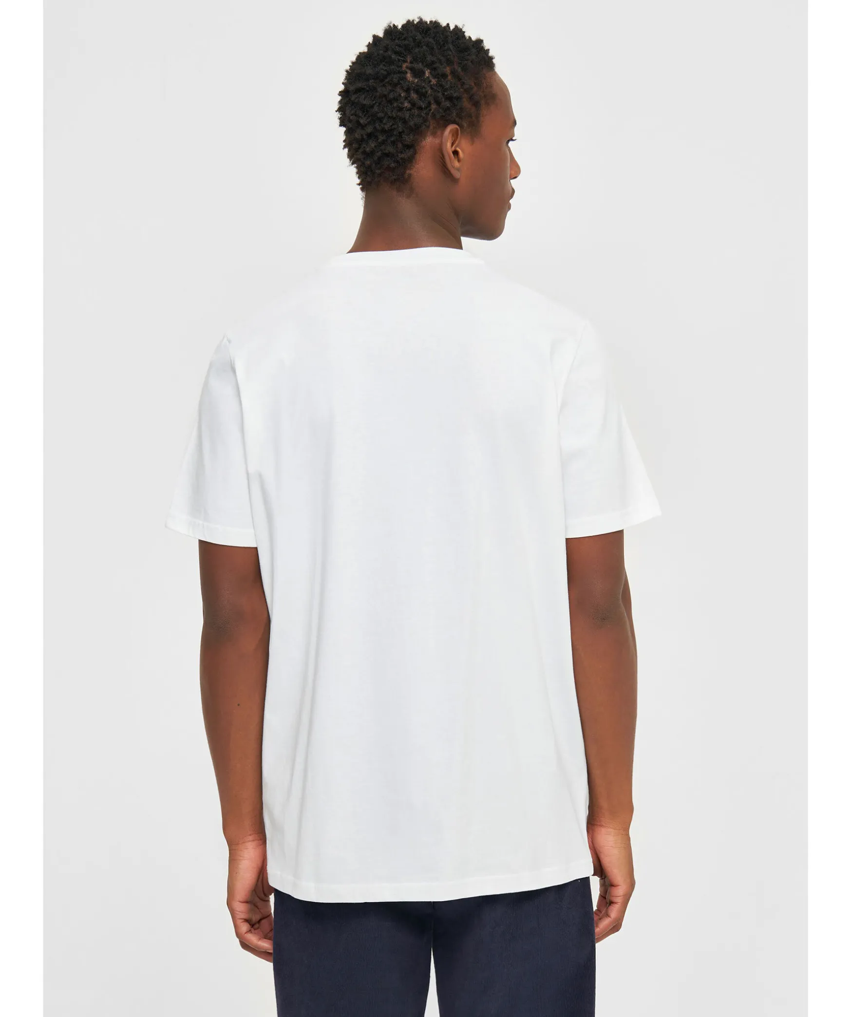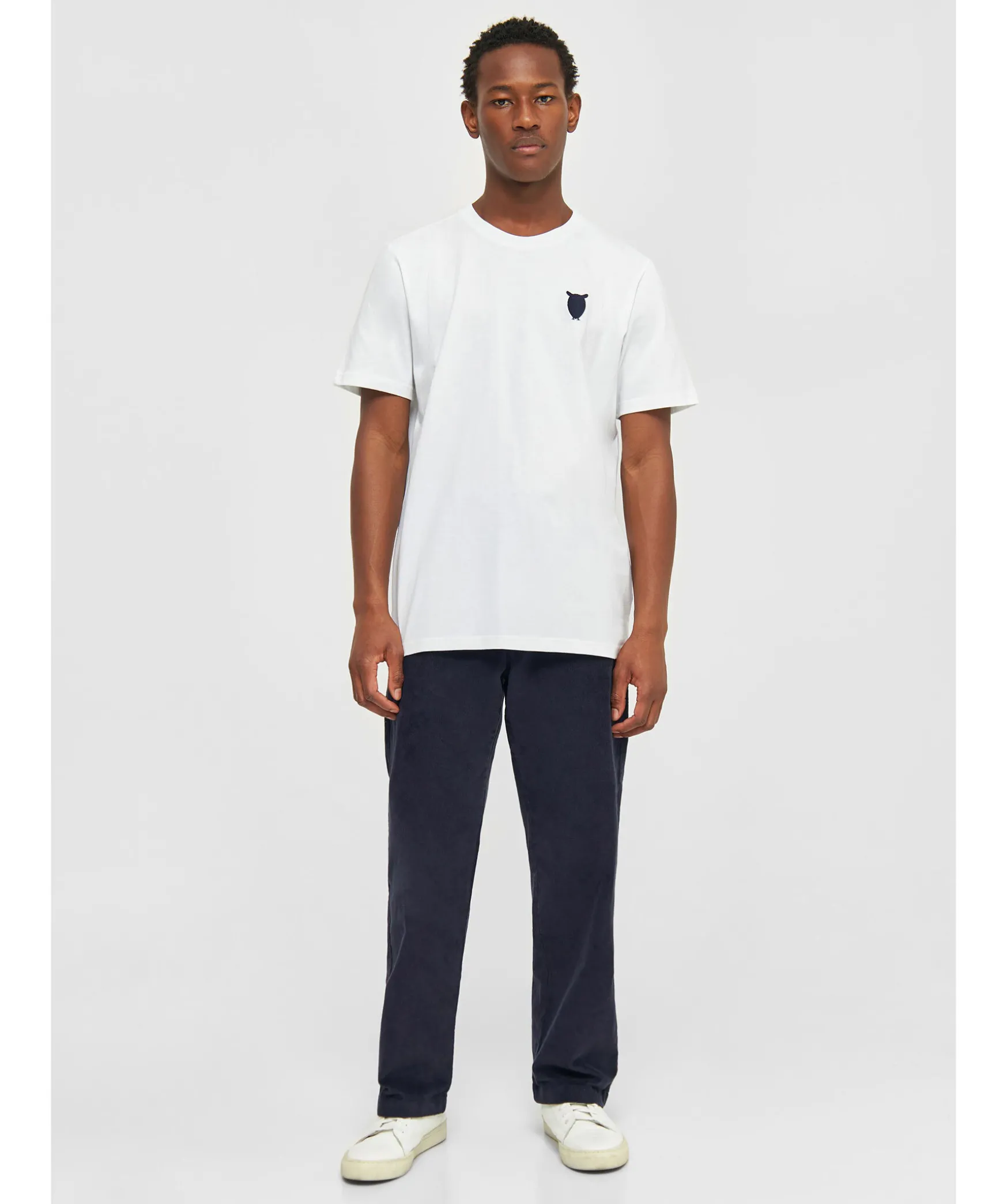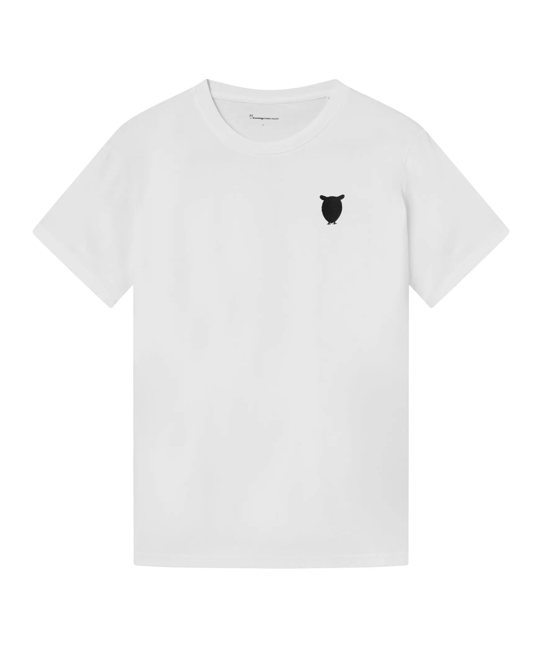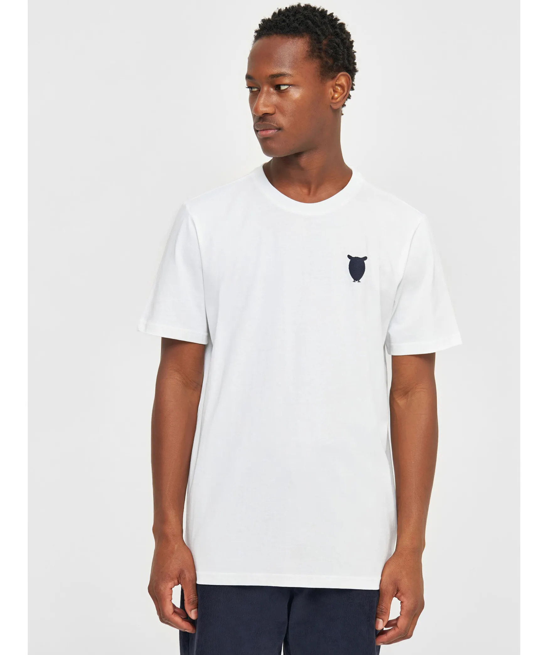 Vit T-Shirt Fran Knowledge Cotton. T-Shirten Har En Broderad Uggla Pa Brostet. Tillverkad Av 100% Ekologisk Bomull.
