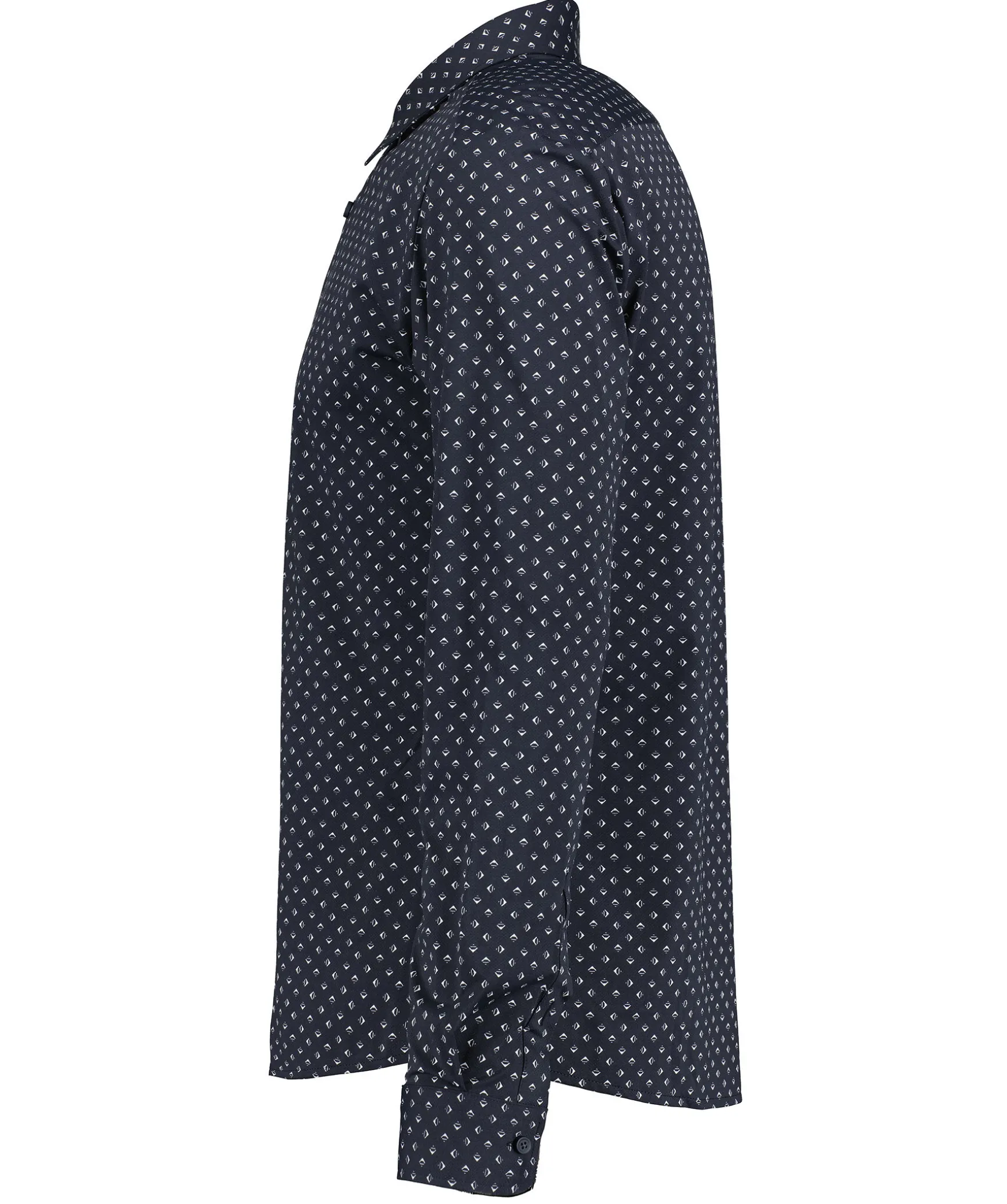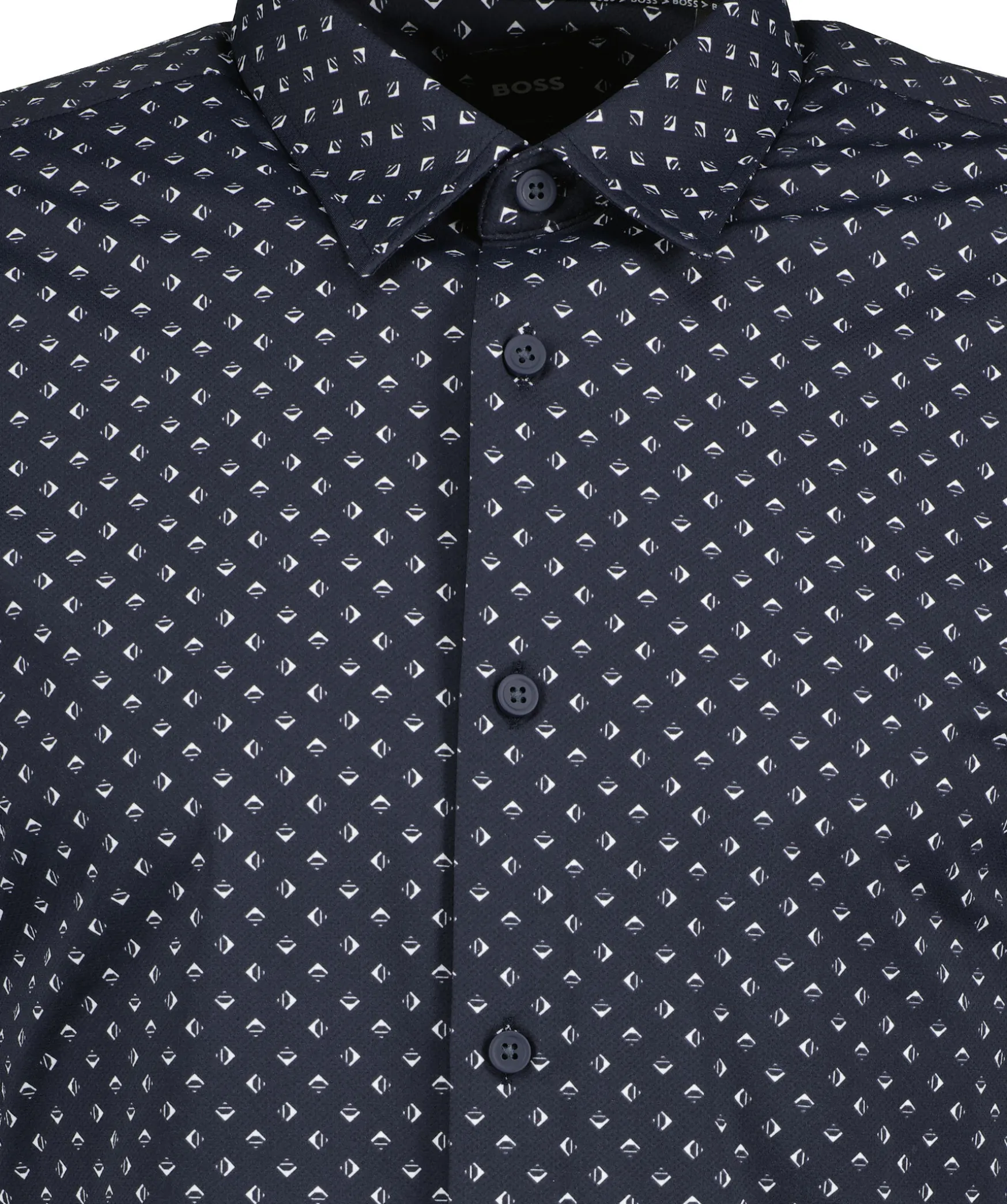 Morkbla, Monstrad Langarmad Skjorta Fran Boss Black. Tillverkad I En Polyamidblandning. Stangs Med Knappning. Normal Passform.