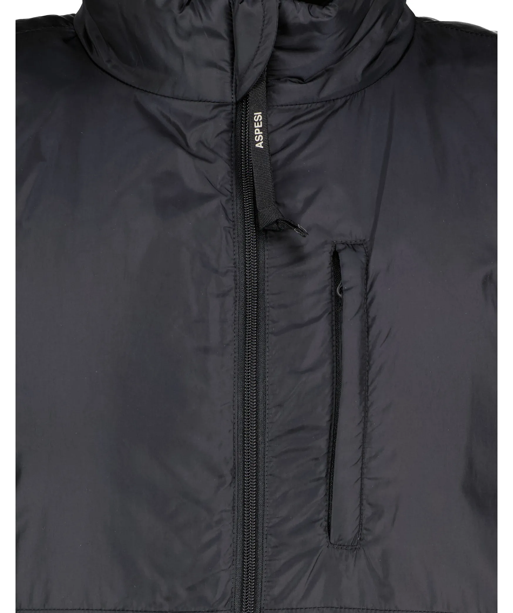 Svart Vadderad Vast Fran Aspesi. Den Ikoniska Gileten Ar Gjord Av Mjuk, Latt Och Slitstark Nylon. Perfekt Nar Temperaturen Faller, Den Ar Vadderad Med Medelvikt Thermore-Vadd For Extra Varme. Detaljer Inkluderar Ett Nylonfoder, Stativkrage, Dragkedja, Tva Vanliga Fickor Med Dragkedja Samt En Brostficka Med Dragkedja, Lycrakant Pa Fallen, Armhal Och Anpassad Dragkedja Med Mikroinjicerad Aspesi-Logotyp. Klipp For En Smal Passform.