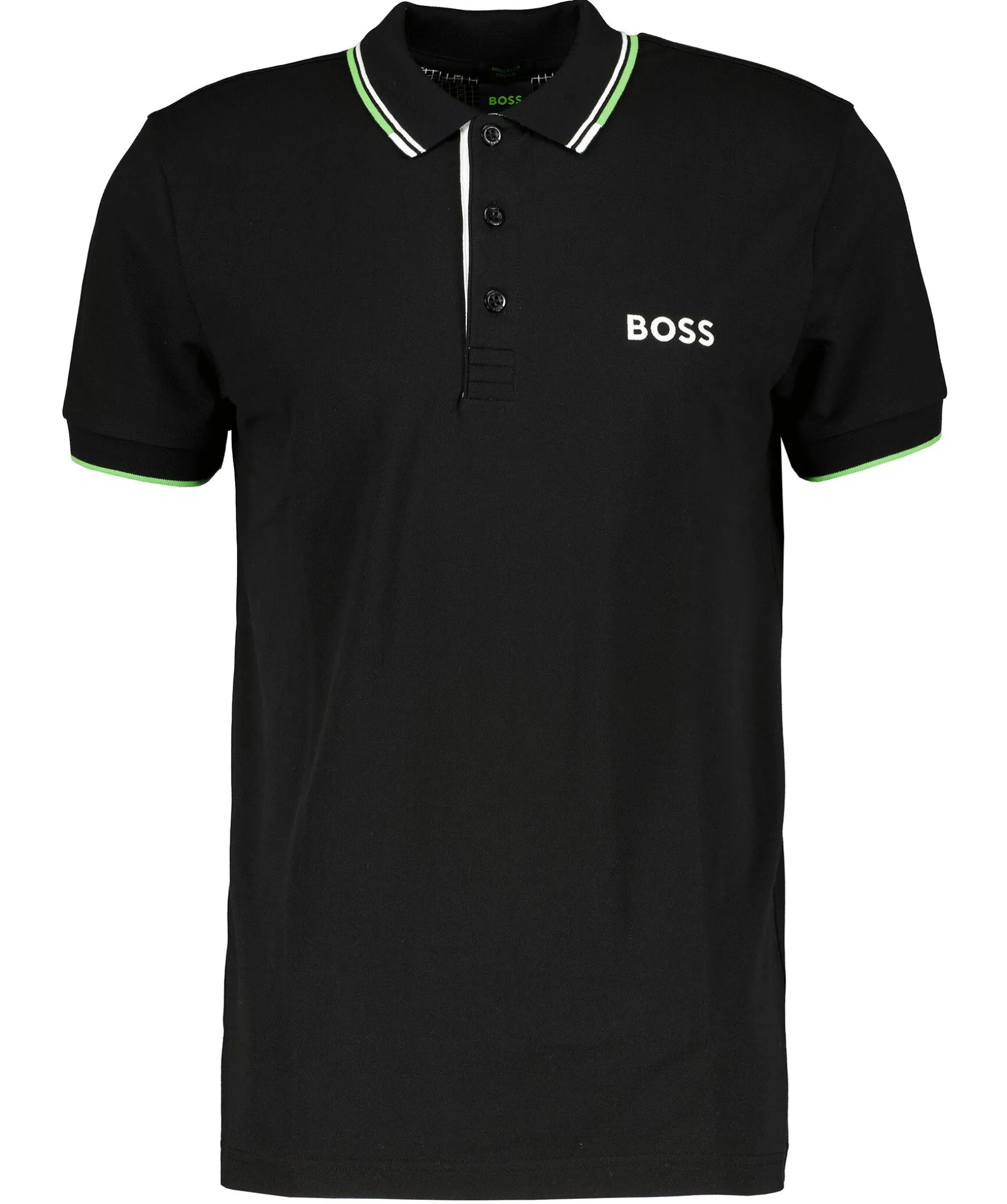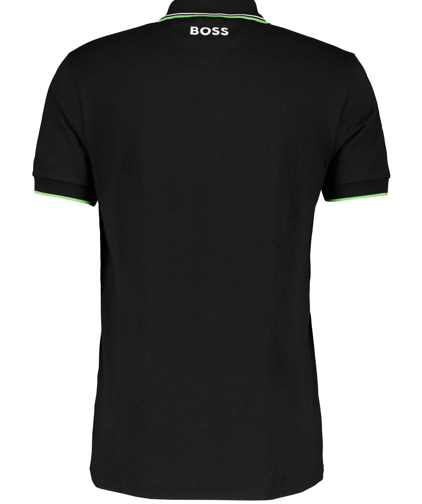 Svart Pike Fran Boss Green. Broderad Logotyp Pa Vanster Brost. Ribbstickade Muddar I Arm Och Kragen. Grona Och Vita Detaljer Pa Kragen. Tillverkad I En Bomullsblandning.