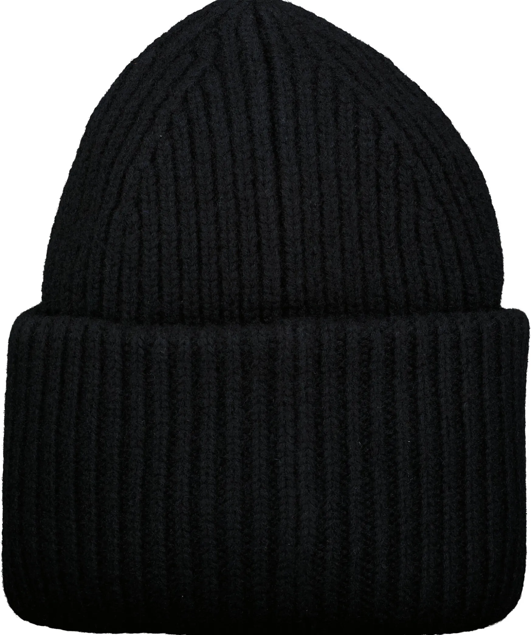 Svart, Ribbstickad Oversizemossa Fran Acne Studios. Tillverkad Av Mjuk Ull, Har En Bred Uppvikt Kant Och En Broderad Patch Med Acnes Ikoniska Face-Logga Fram.
