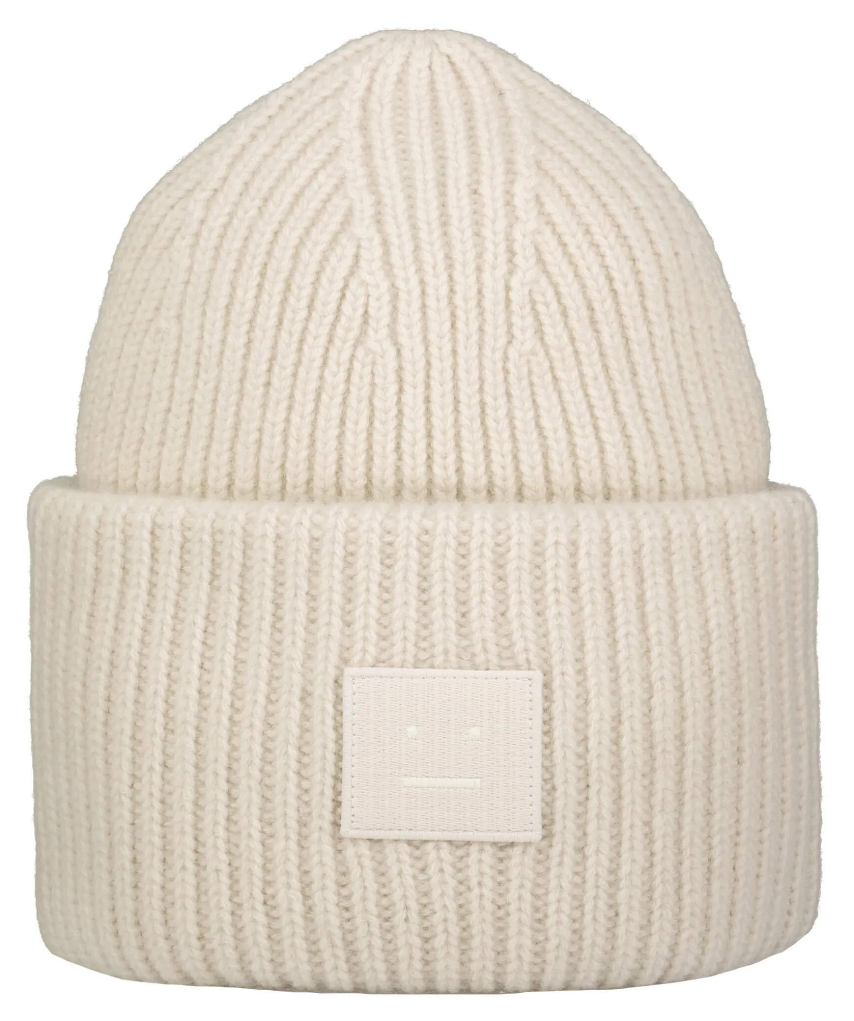 Kramfargad, Ribbstickad Oversizemossa Fran Acne Studios. Tillverkad Av Mjuk Ull, Har En Bred Uppvikt Kant Och En Broderad Patch Med Acnes Ikoniska Face-Logga Fram.