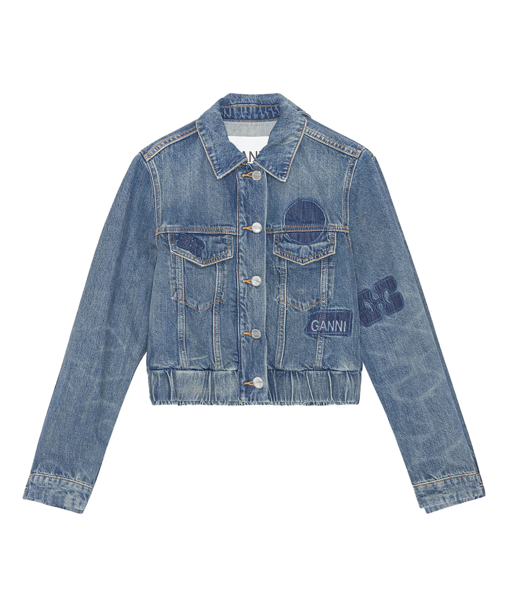 Bla Jeansjacka I Cropad Modell Fran Ganni. Stangs Framtill Med Knappar. Brostfickor Som Stangs Med Tryckknapp, Oppna Fickor I Sidorna. Bred Elastisk Resar Vid Jackslut. Enkla Manschetter Vid Armslut. Embossad Logotyper Over Jackan I En Morkare Jeansfarg. Tillverkad I 100% Organisk Bomull.