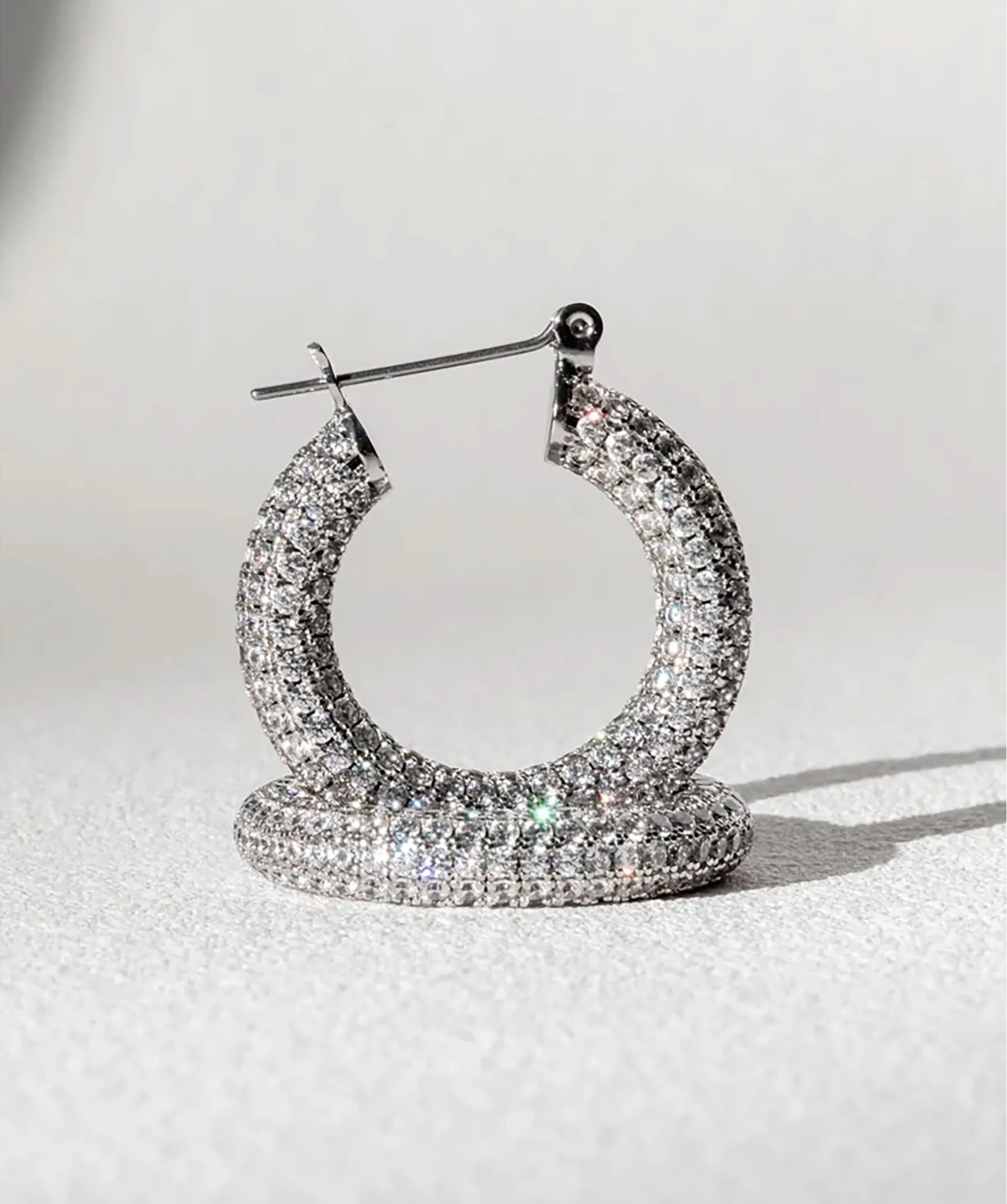 Silverfargade Orhange Med Stenar Fran Luv Aj. Diametern Pa Orhangets Utsida Ar 22.4 Mm. Platerat Massing Med Kubisk Zirkonia Stenar.
