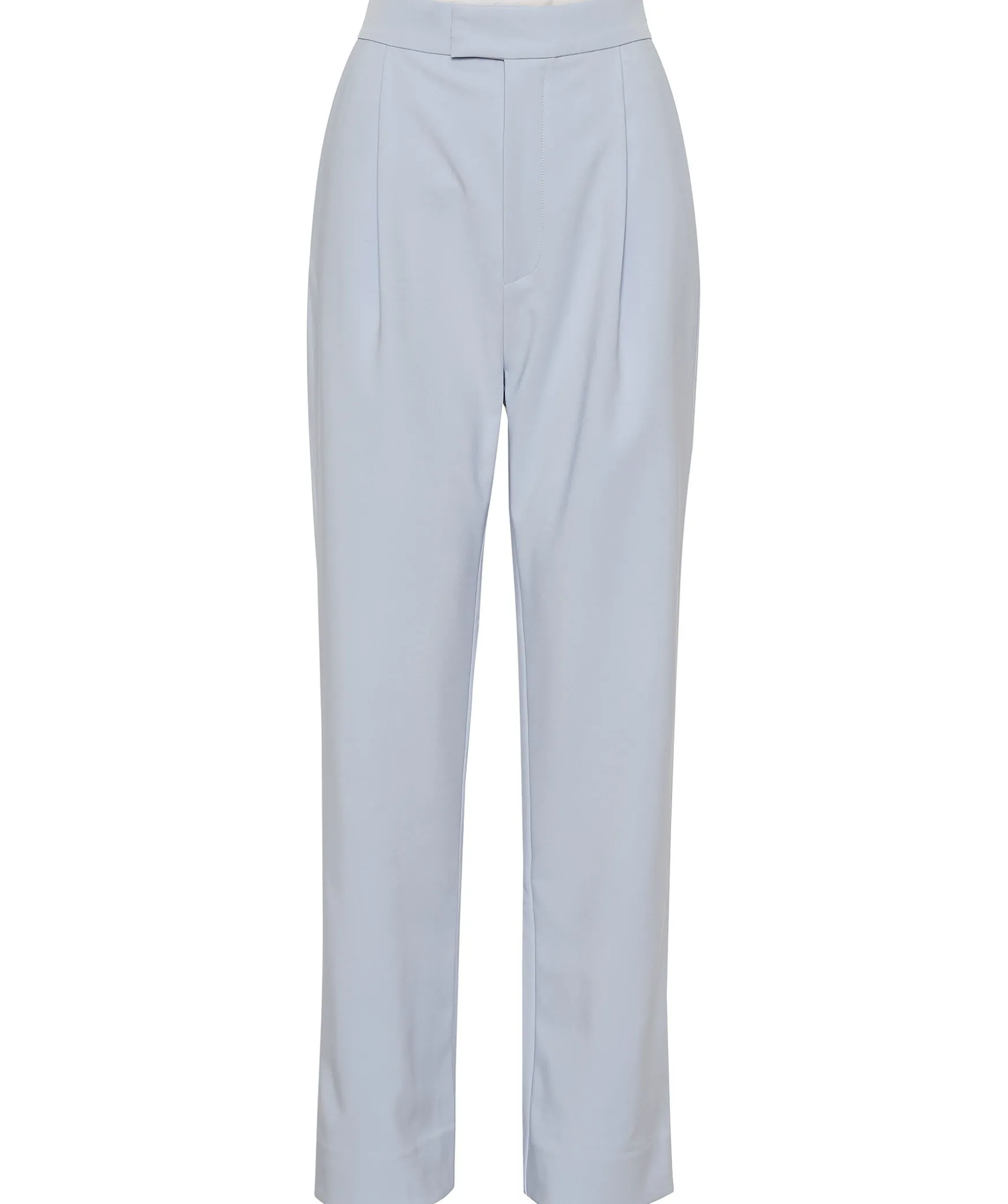 Ljusblaa Kostymbyxor Fran Custommade. Byxorna Har Raka Ben Och Hog Midja. Tva Framfickor.