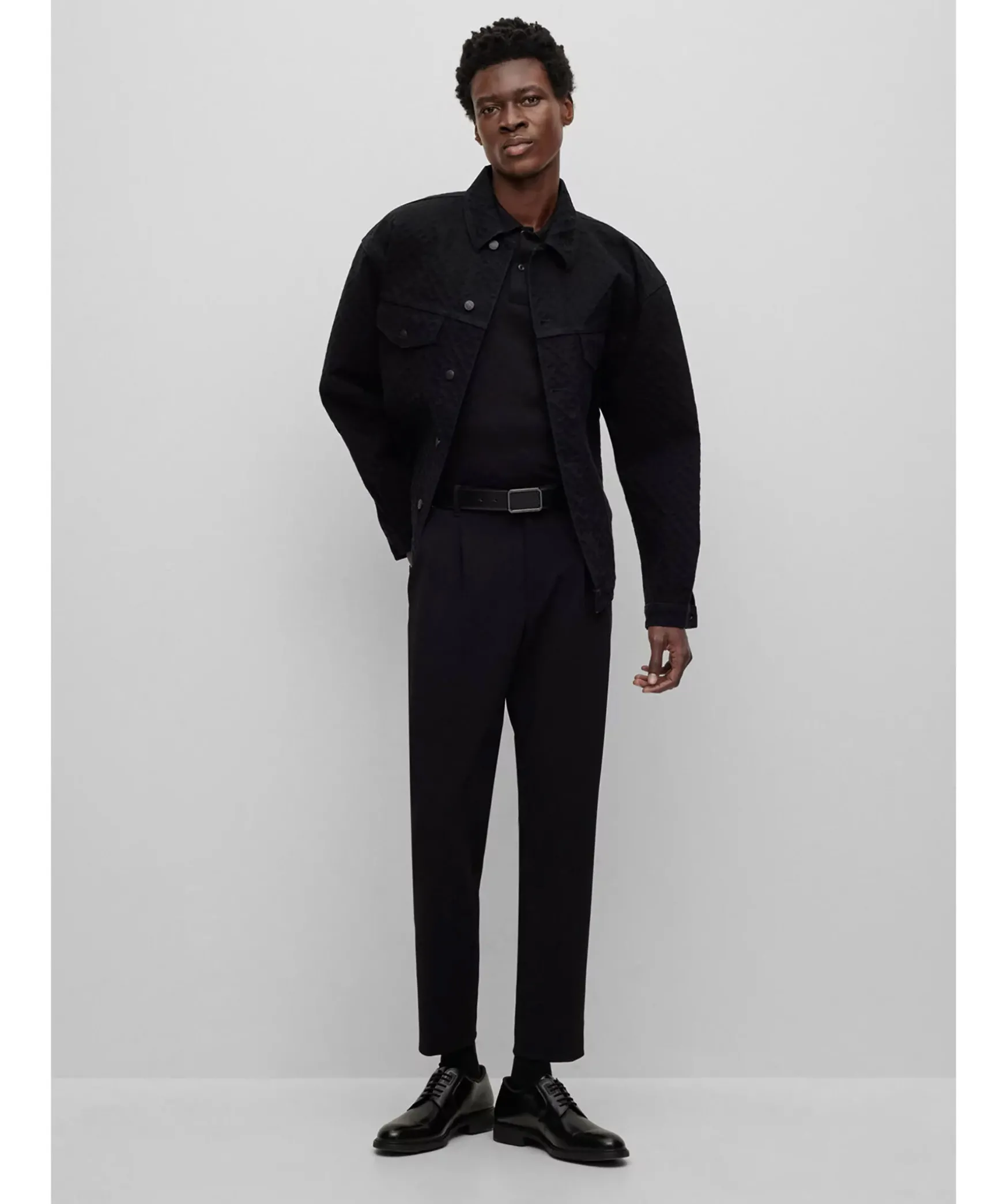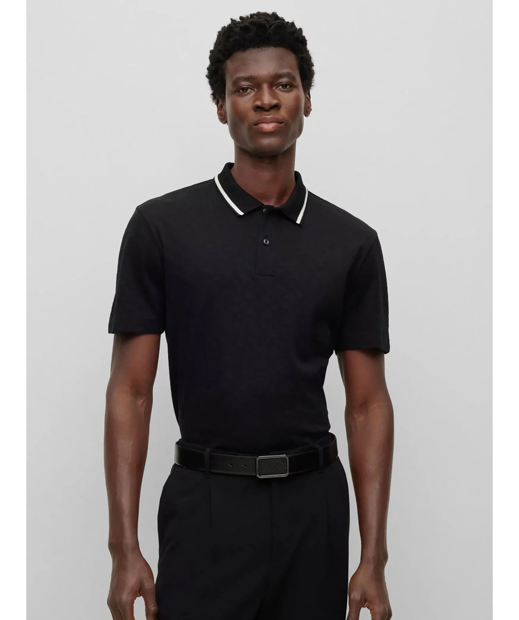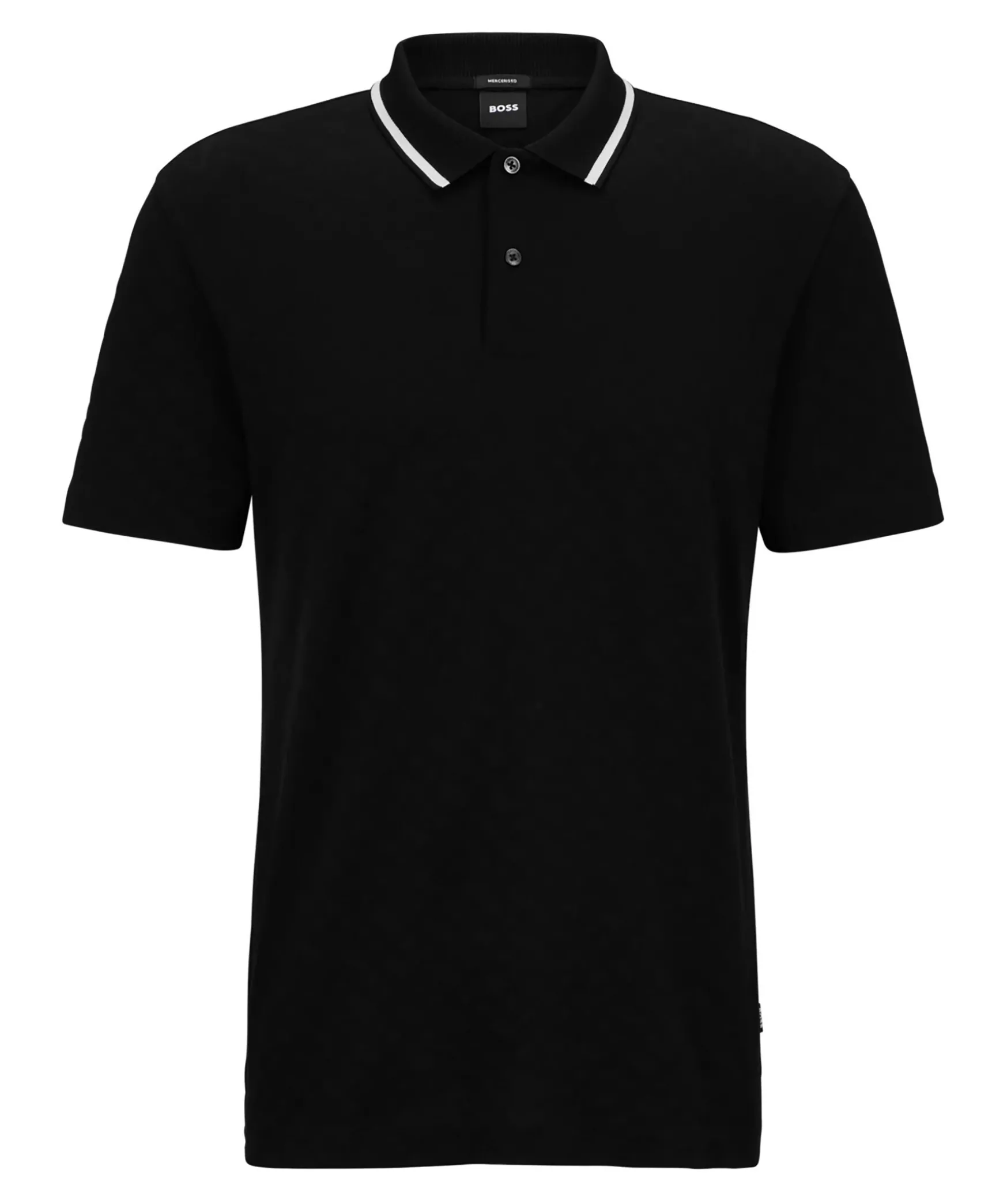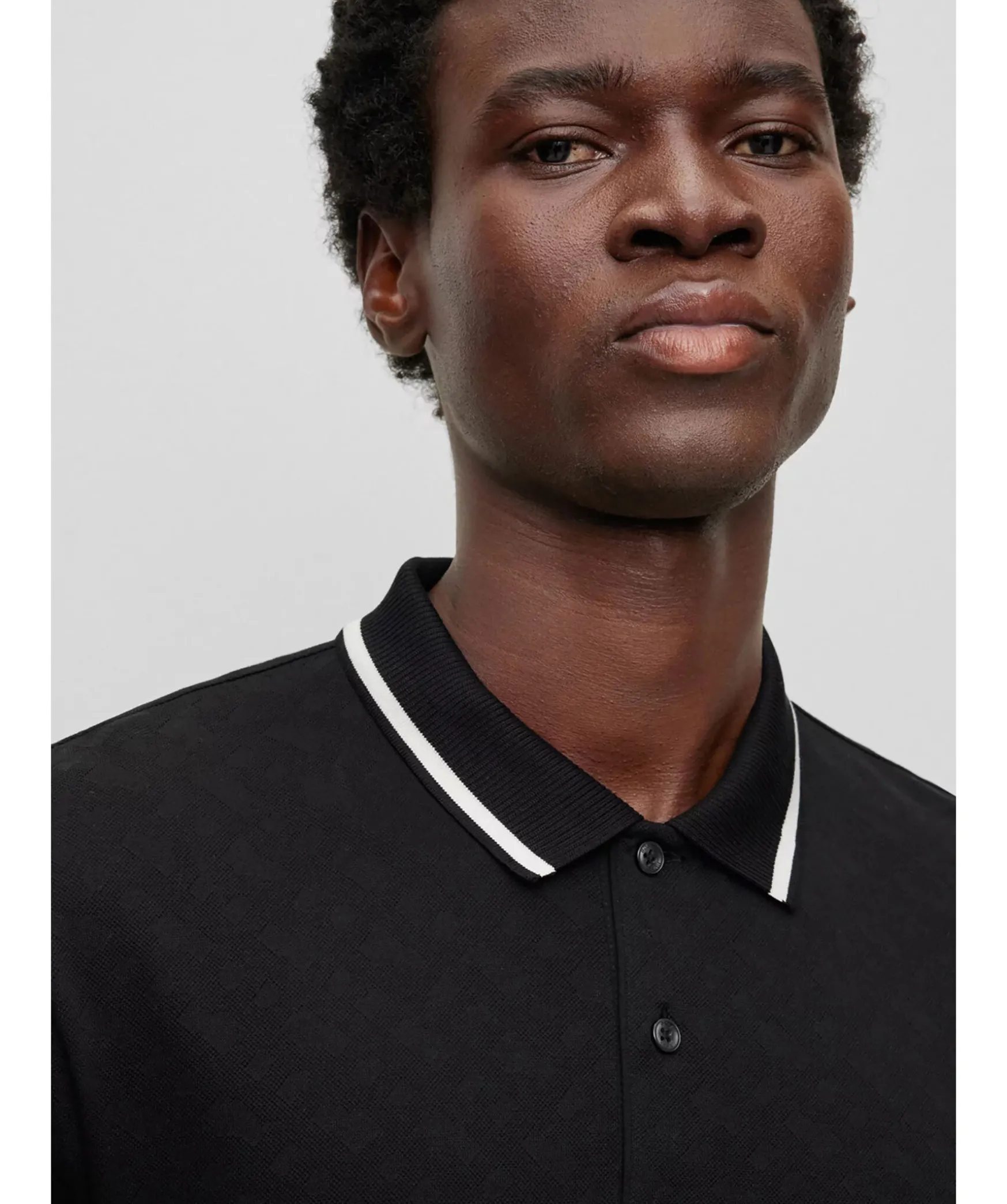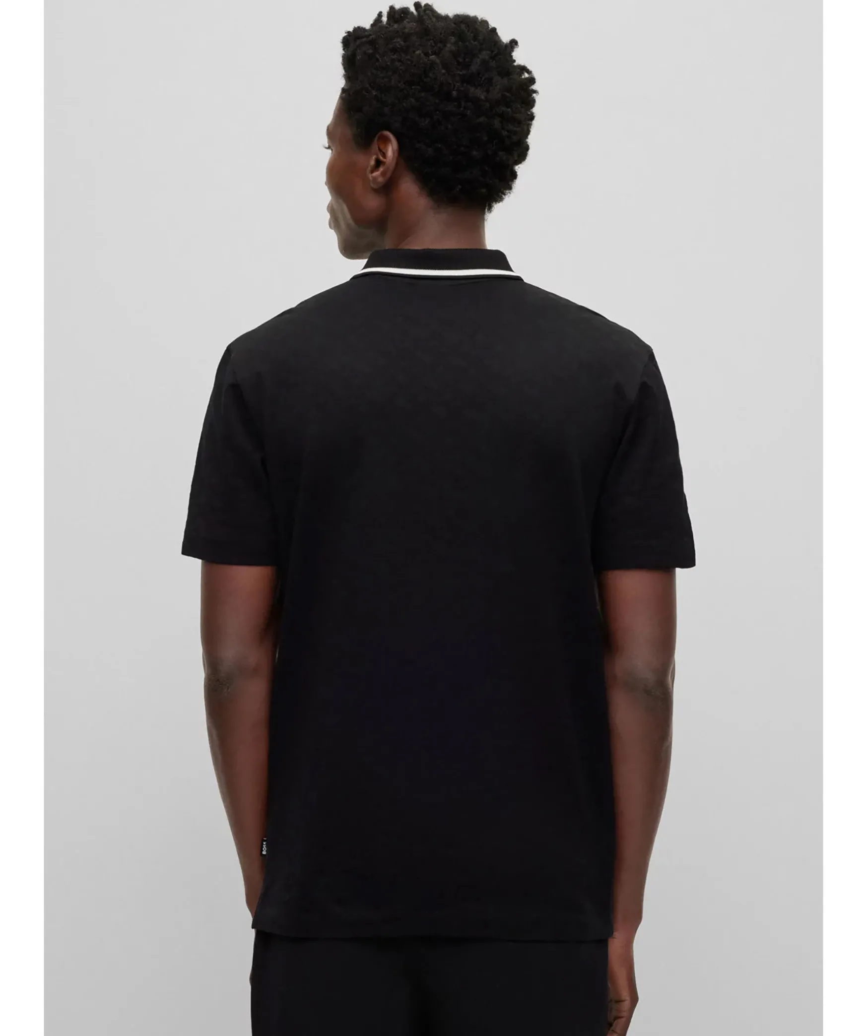 Svart Modern Piketroja Fran Boss Black. Den Har Kortarmade Piketrojan I Regular Fit Har En Casual-Silhuett. Den Ar Tillverkad Av Bomull Med Monogrammonstrad Jacquard. Kragens Kant Har En Kontrastrand. Normal Passform.