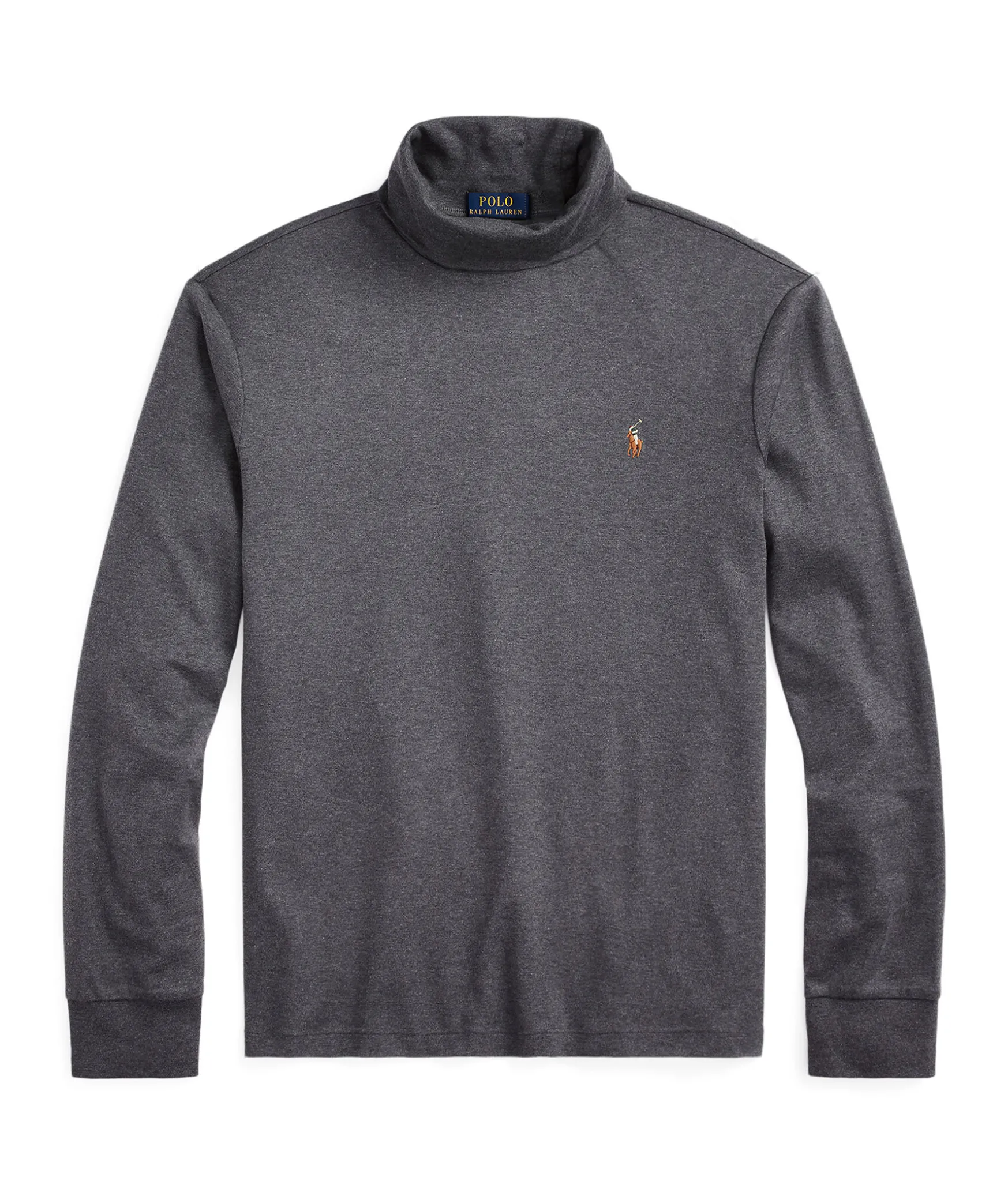 Morkgra Polotroja I 100% Bomull Fran Polo Ralph Lauren. Ribbad Mudd I Armslut Och Broderad Logotyp Pa Vanster Brost. Modellen Ar 185Cm Lang Och Har Pa Sig Storlek M.