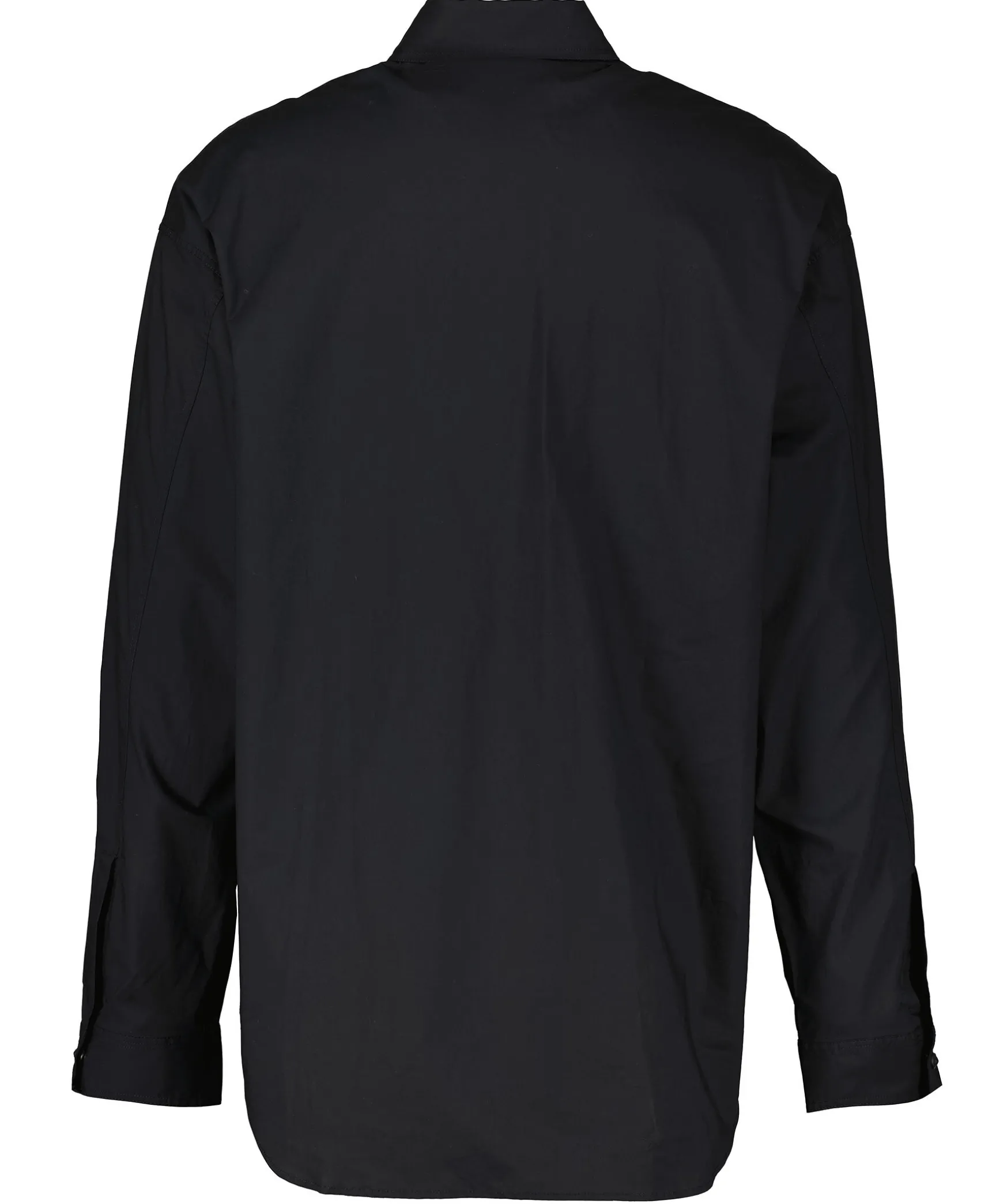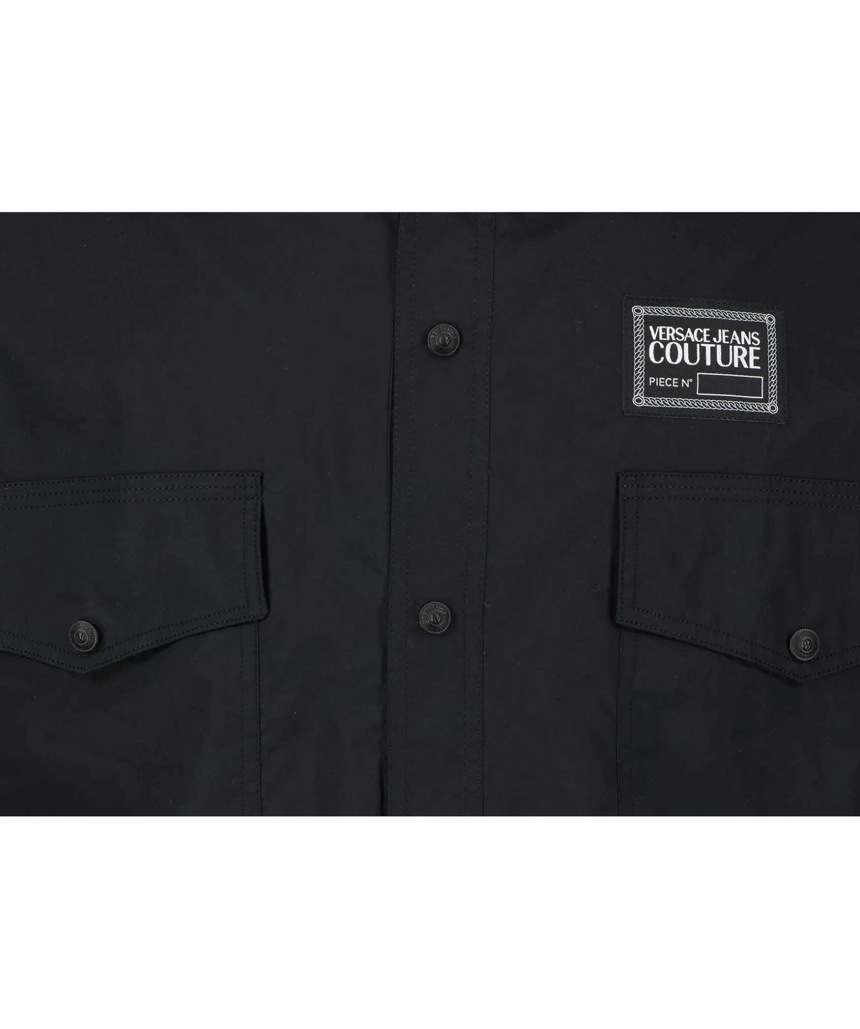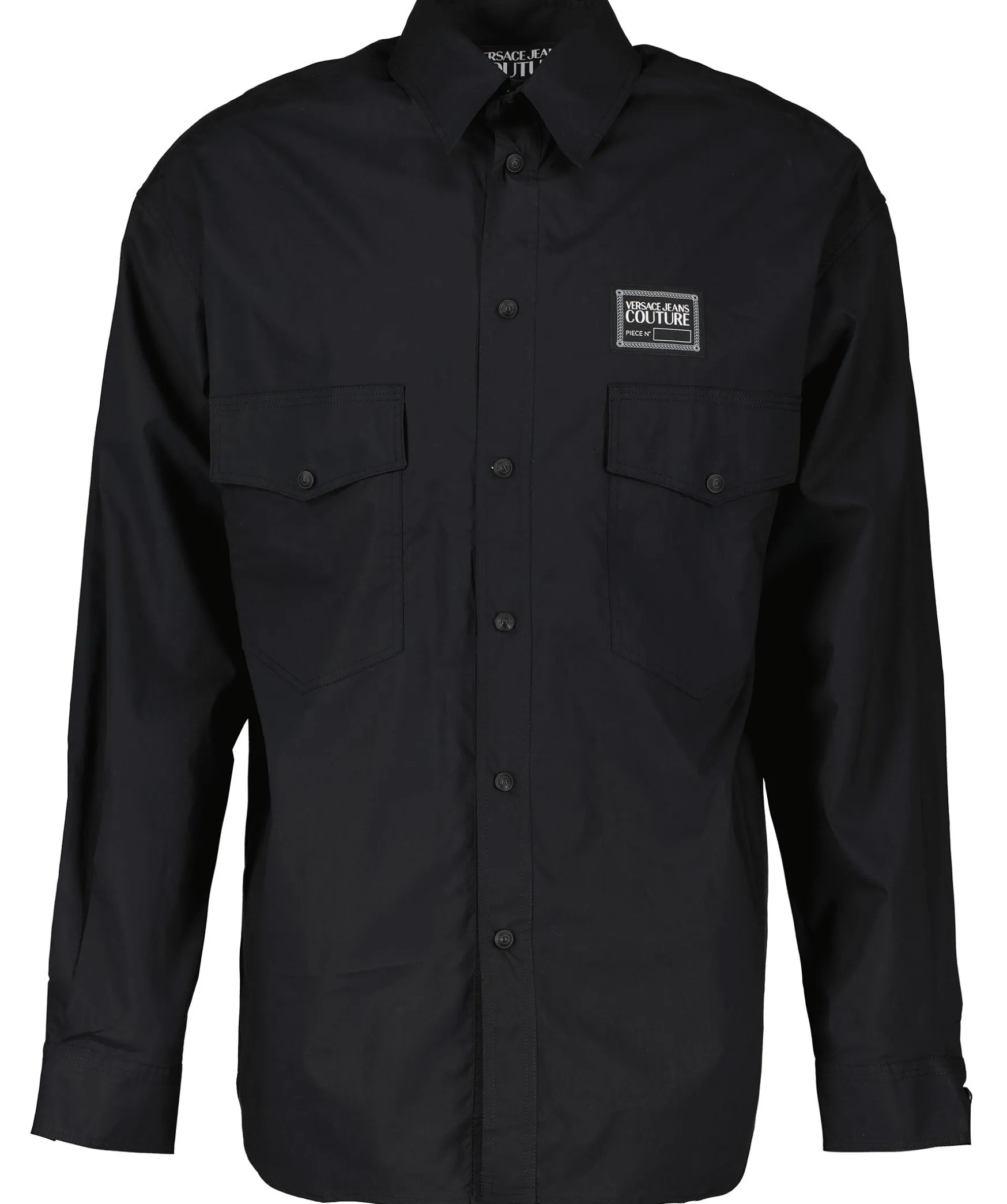 Svart, Langarmad Skjorta I Avslappnad Modell Fran Versace Jeans Couture. Spetsig Krage Och Tva Brostfickor Med Tryckknapp. Stangs Med Svarta Tryckknappar Hela Vagen Framtill Och I Armslut Samt Har En Patch Med Logotyp Ovanfor Den Vanstra Brostfickan. Tillverkad I 100% Bomull.