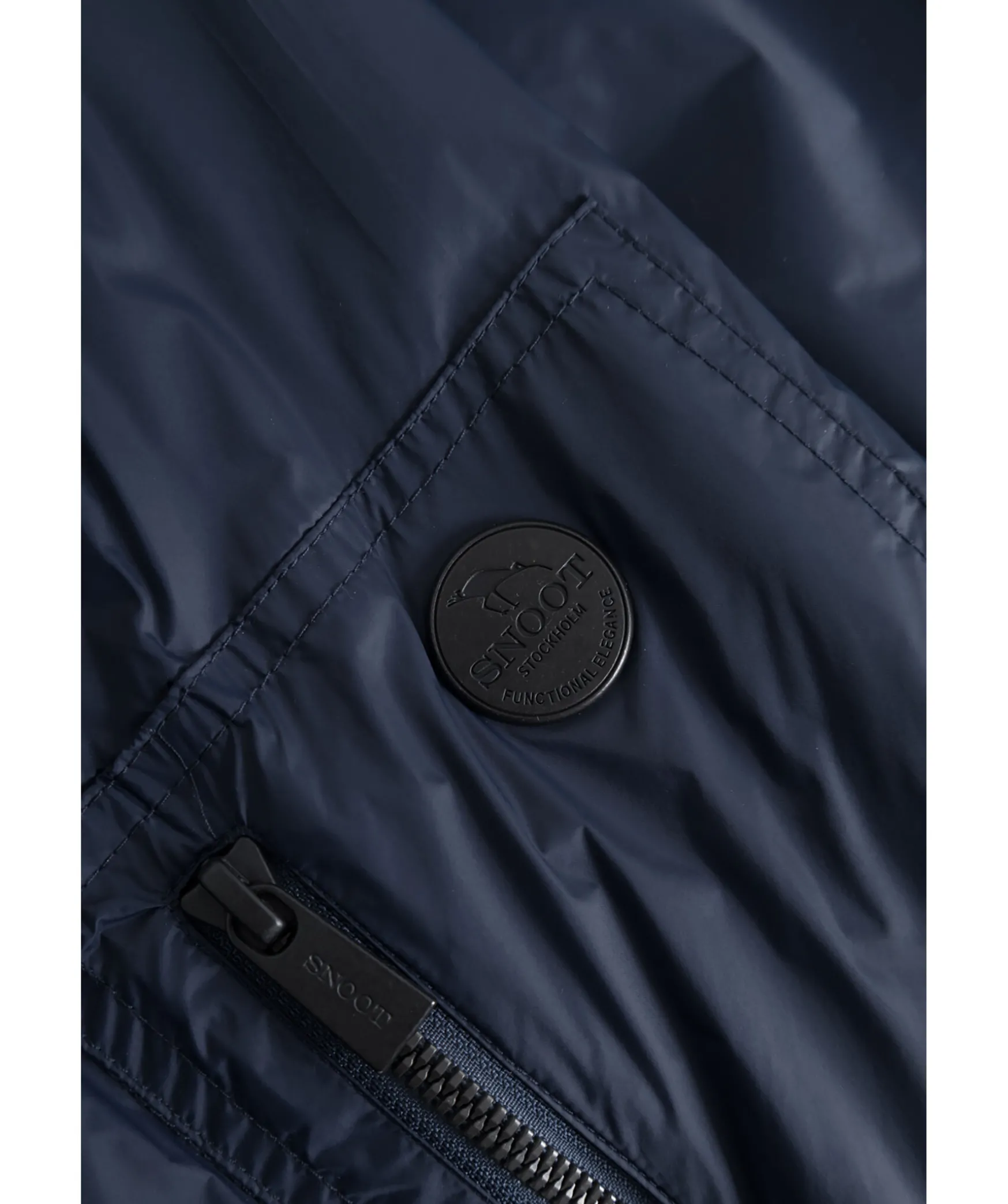 Morkbla Lattviktsjacka Fran Snoot Med Flera Designade Fickor. Stangs Framtill Med Tryckknappar. Brostfickor Som Stangs Med Lock Och Tryckknappar. Jackan Ar Av Tunnare Kvalite Funkar Den Bade Som Lager Pa Lager Och For Sig Sjalv. Metallogga Pa Vanster Arm.