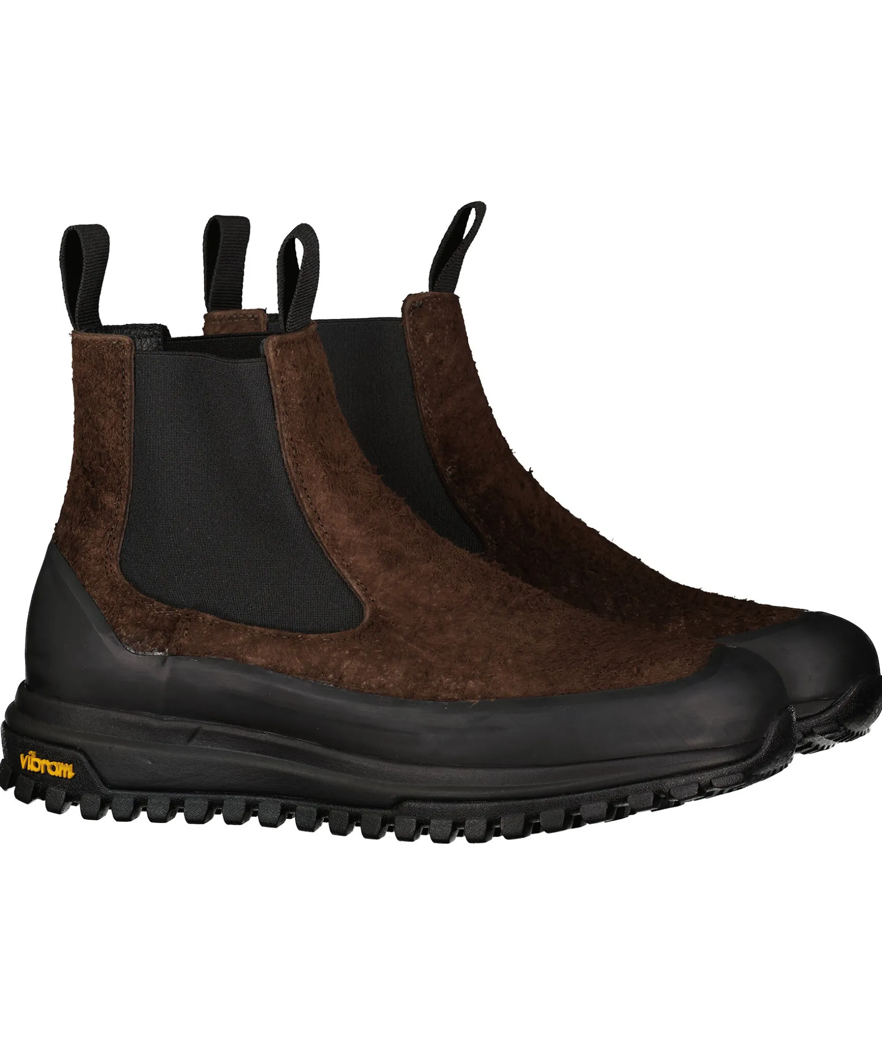 Bruna Chelsea Boots I Mocka Fran Diemme. Greppvanliga Och Extra Slitstarka Latta Vibram-Gummisulor. Gummerad Kant Som Gar En Bit Upp Over Skon Nedtill Sa Skorna Haller Sig Torra. Skorna Ar En Halv Storlek Storre Sa Ar Du Mellan Storlekar Ta En Mindre Om Du Vill Ha En Tajtare Passform.