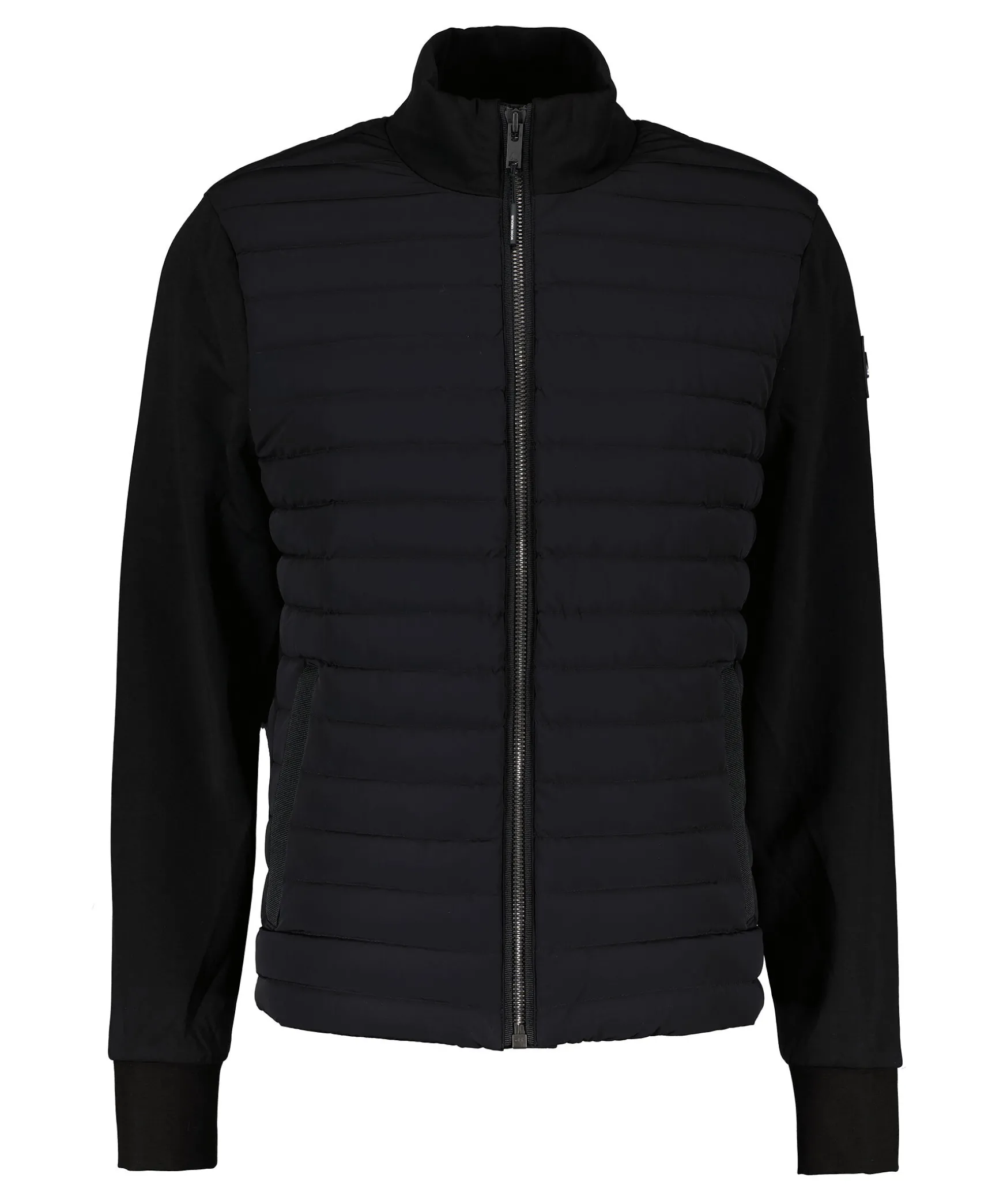 Svart Hybrid Jacka Fran Moose Knuckles. Quiltad Dunfylld Panel Pa Jackans Framsida Och Over Axlarna Pa Jackans Baksida. Tva Fickor Framtill Som Stangs Med Dragkedja. Gummerad Patch Med Logotyp I Metall Pa Vanster Arm. Mudd Vid Armslut.