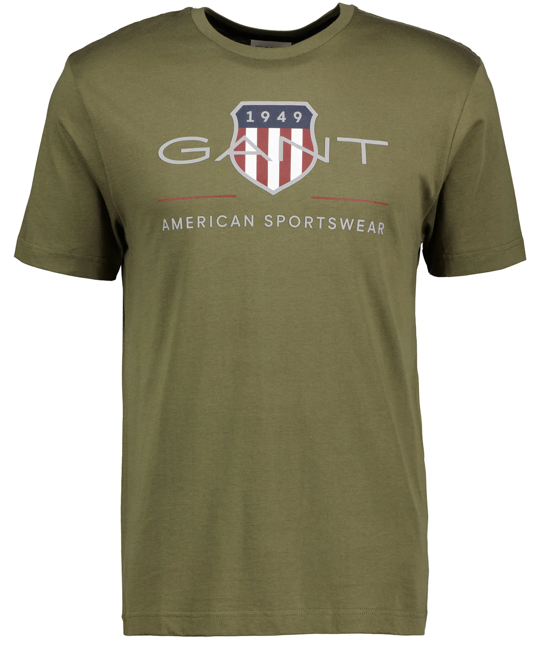 Gron T-Shirt I Stretchig Bomull Fran Gant. Rund Halsringning Och Rak Modell. Tryckt Logotyp Och Skold Mitt Pa Brostet. Tillverkad I 100% Bomull.