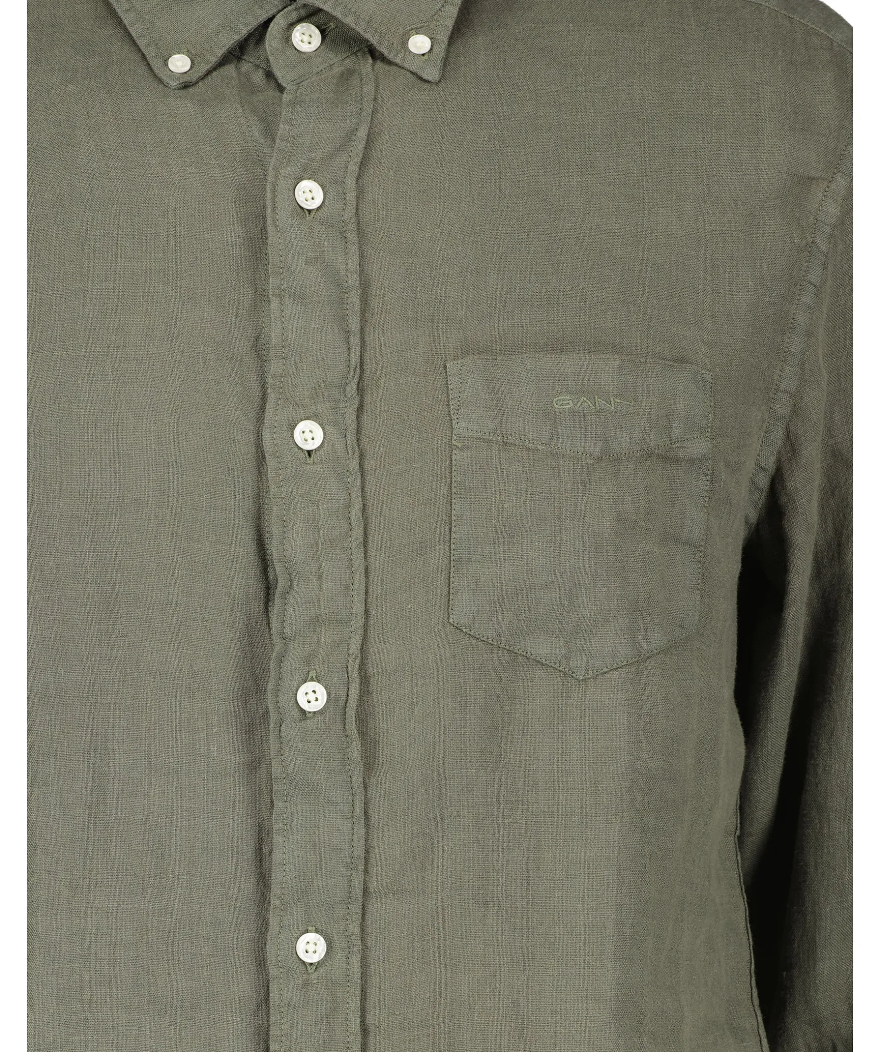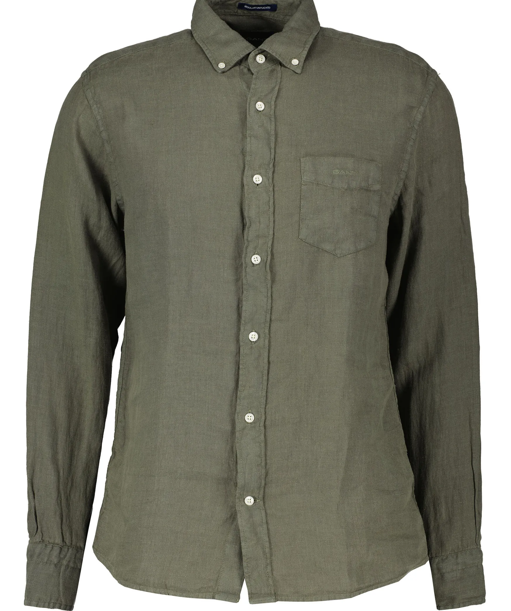 Skogsgron Skjorta I Regular Fit Fran Gant. Tillverkad 100% Linnetyg. Har Vita Knappar Hela Vagen Fram, Button Down Krage Och Dubbla Manschetter. Liten Broderad Logotyp Pa Vanster Brost.