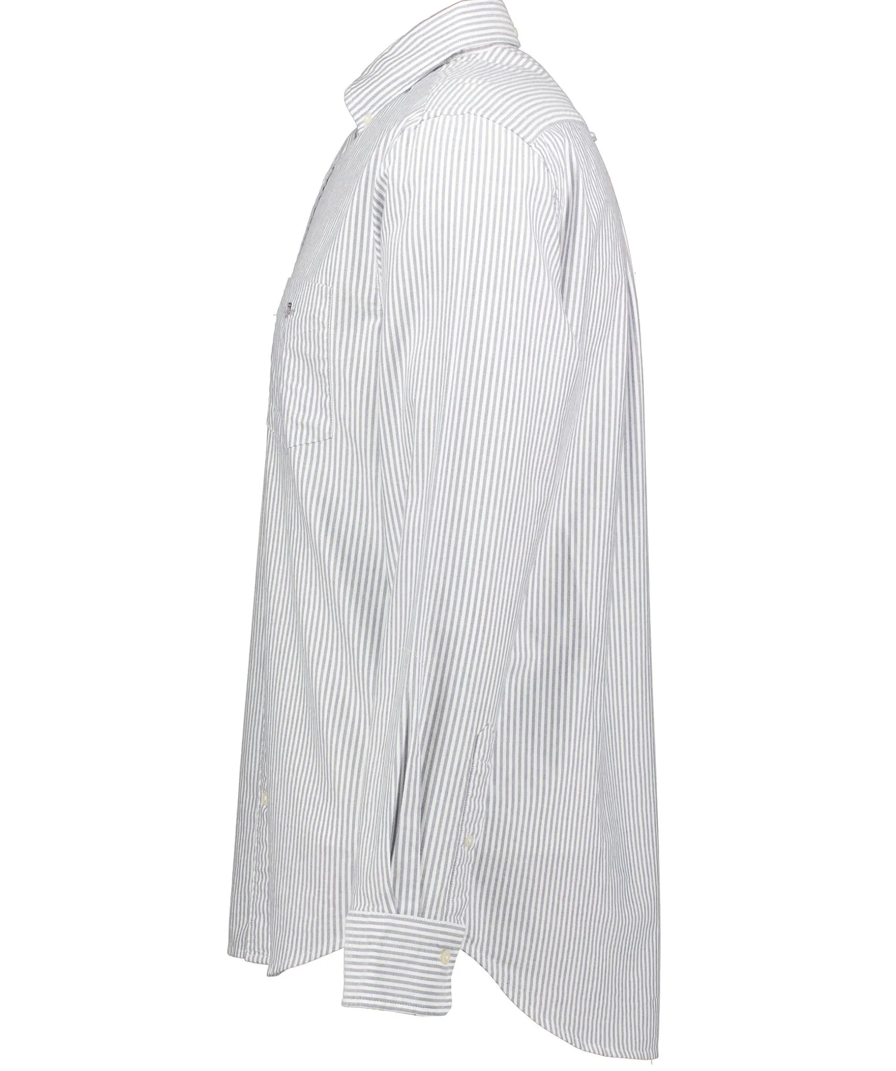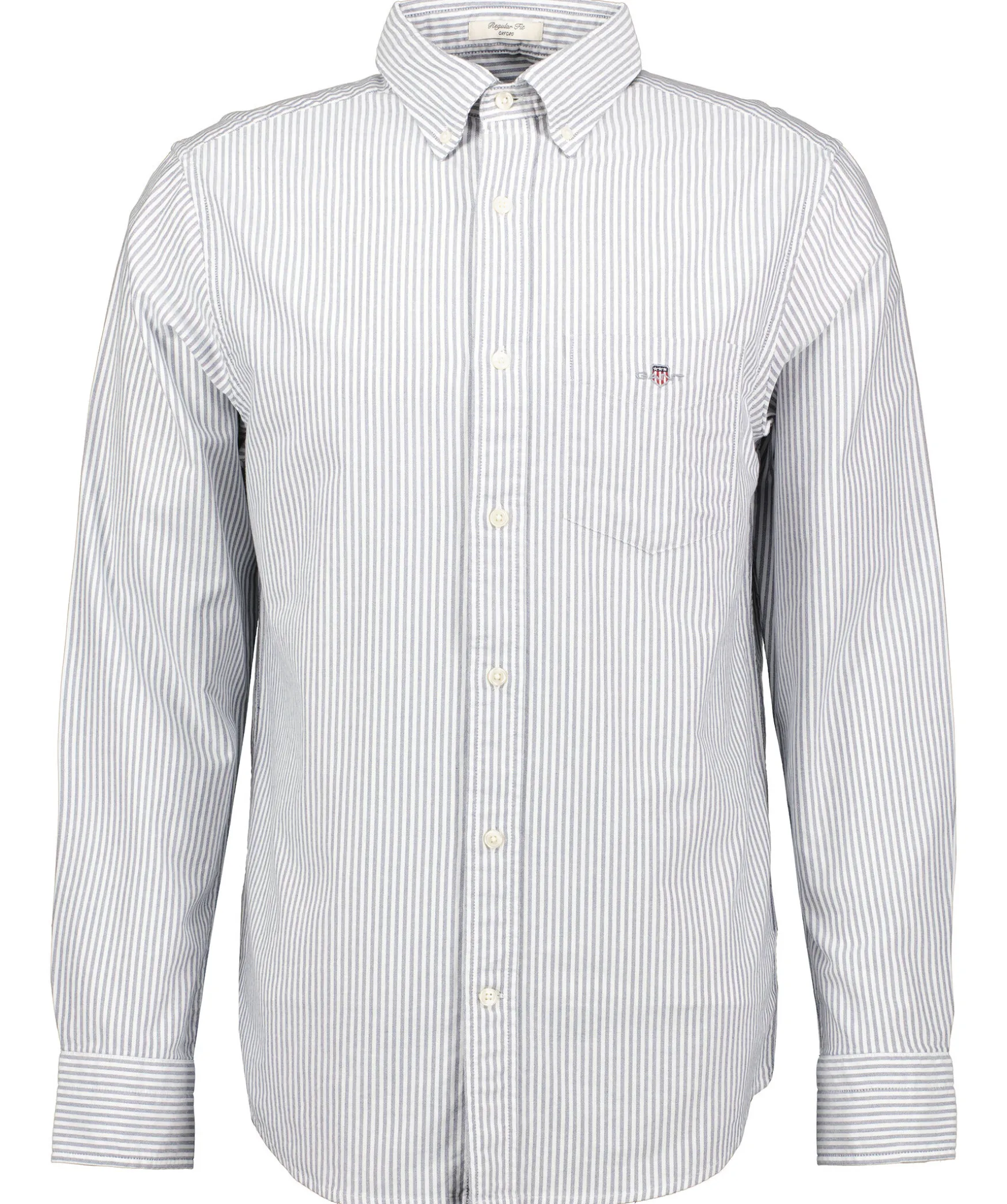 Randig Oxfordskjorta Fran Gant I Fargerna Vitt Och Grabla. Button Down Krage, Rundad Fall Och En Brostficka Med Broderad Skoldlogotyp. Boxpleat Med Locker Loop I Ryggen. Tillverkad I 100% Bomull. Normal Passform.