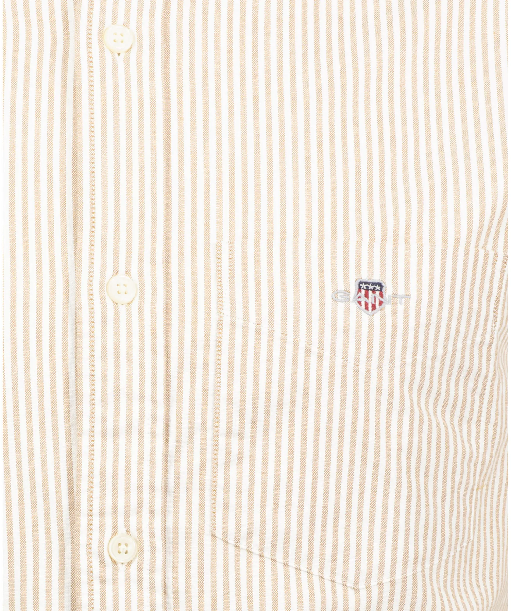 Randig Oxfordskjorta Fran Gant I Fargerna Vitt Och Sandfargat. Button Down Krage, Rundad Fall Och En Brostficka Med Broderad Skoldlogotyp. Boxpleat Med Locker Loop I Ryggen. Tillverkad I 100% Bomull. Normal Passform.