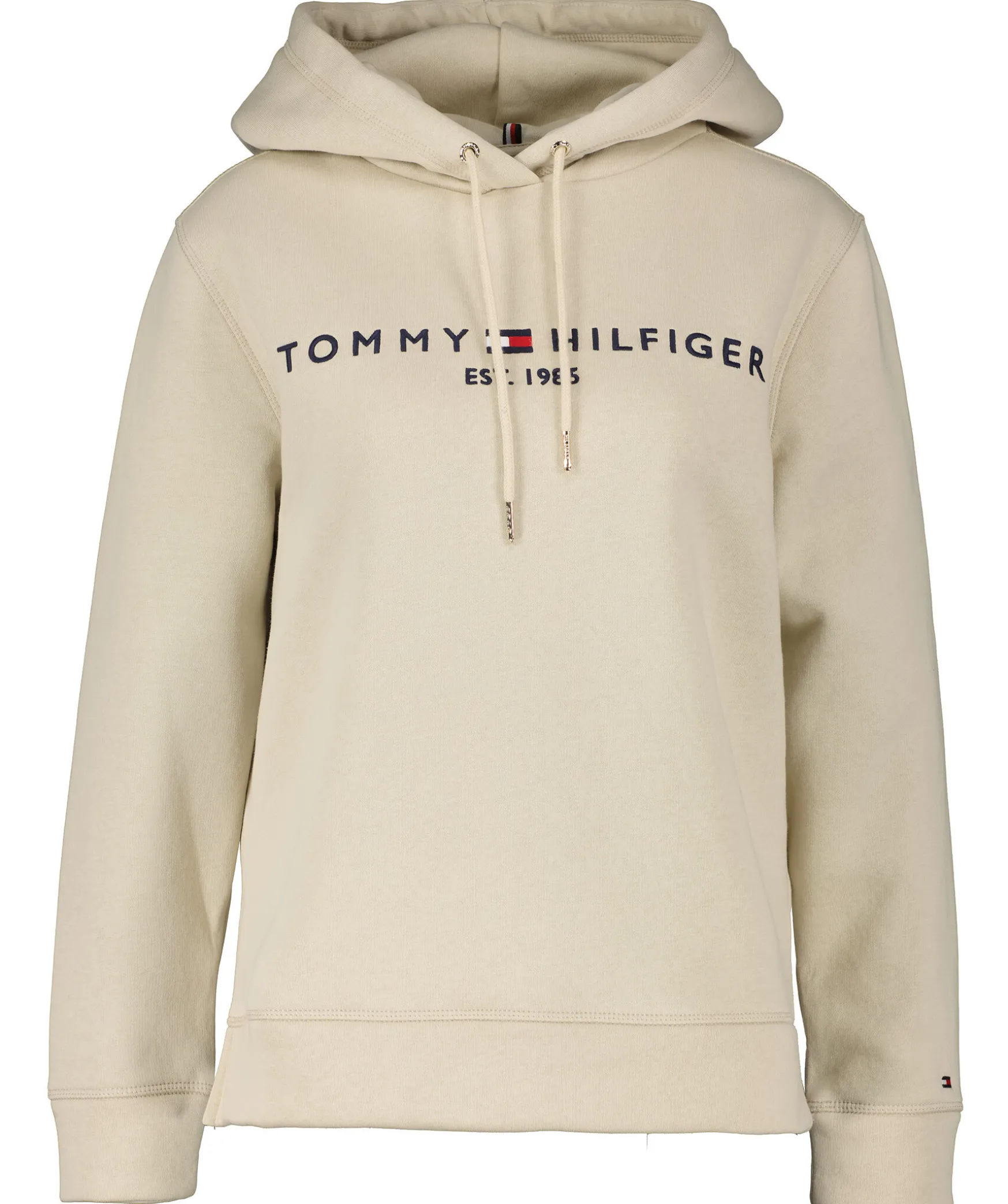 Beige Hoodie Fran Tommy Hilfiger. Luva Med Dragsko. Broderad Logotyp Over Brostet. Ribbstickad Mudd Vid Arm- Och Plaggslut. Borstad Insida. Tillverkad I Bomullsblanding.