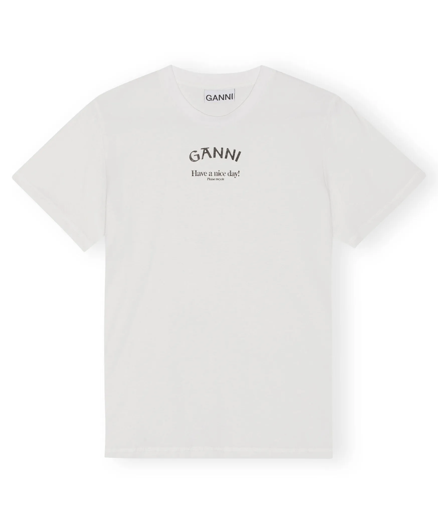 Vit T-Shirt Med Logotyp Pa Framsidan Fran Ganni. Tillverkad Av Ekologisk Bomull. Rundad Halsring, Korta Armar Och Avslappnad Passform.