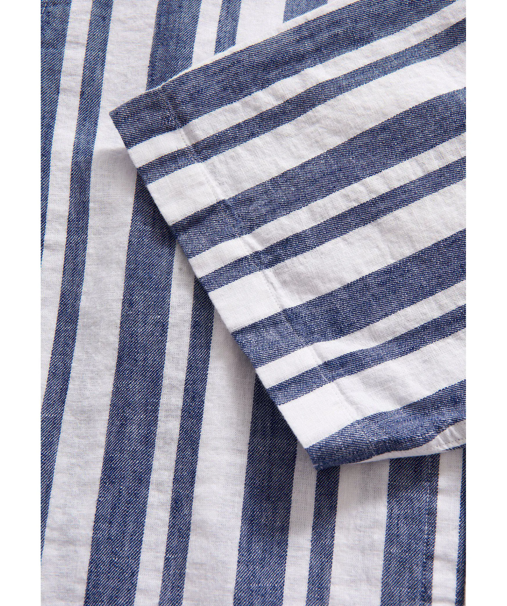 Kortarmad Skjorta I Regular Fit Med Bowlingkrage. Gjord I Ett Randigt Bomull Och Linnetyg.