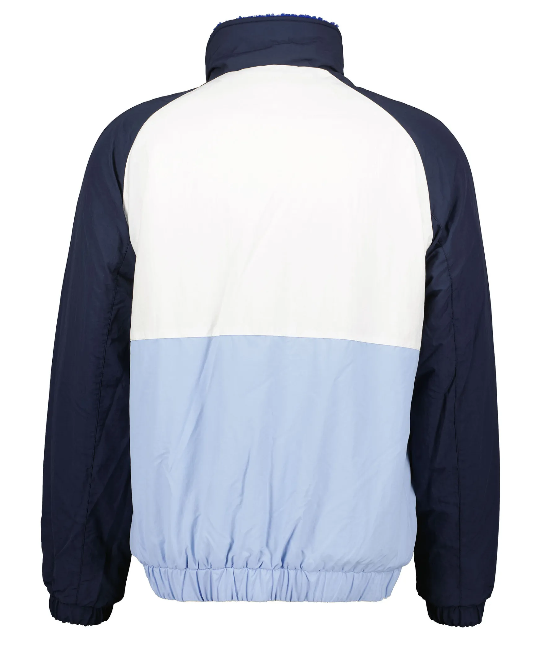 Bla Och Vit Jacka Fran Tommy Jeans. Jackan Ar Reversible Och Ar Pa Ena Sidan I Ett Teddy-Material Med Koboltblaa Armar, Krage Samt Fickor Och Pa Andra Sidan Marinblaa Armar Samt Krage, Ljusbla Nederdel Och Resterande Vitt. Bada Sidorna Har En Broderad Logotyplapp Pa Vanster Sida Pa Brostet. Jackan Stangs Med Dragkedja.