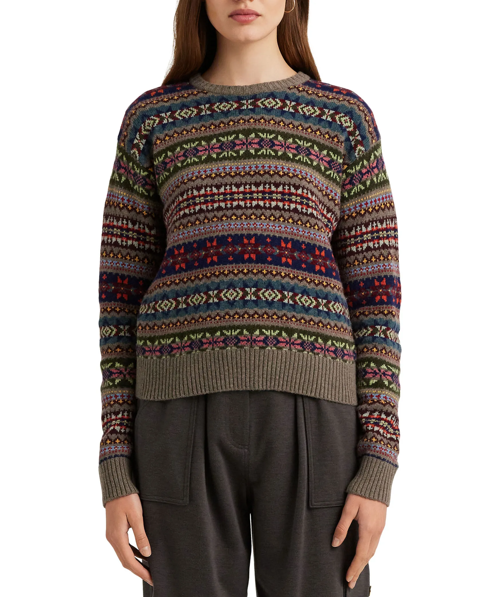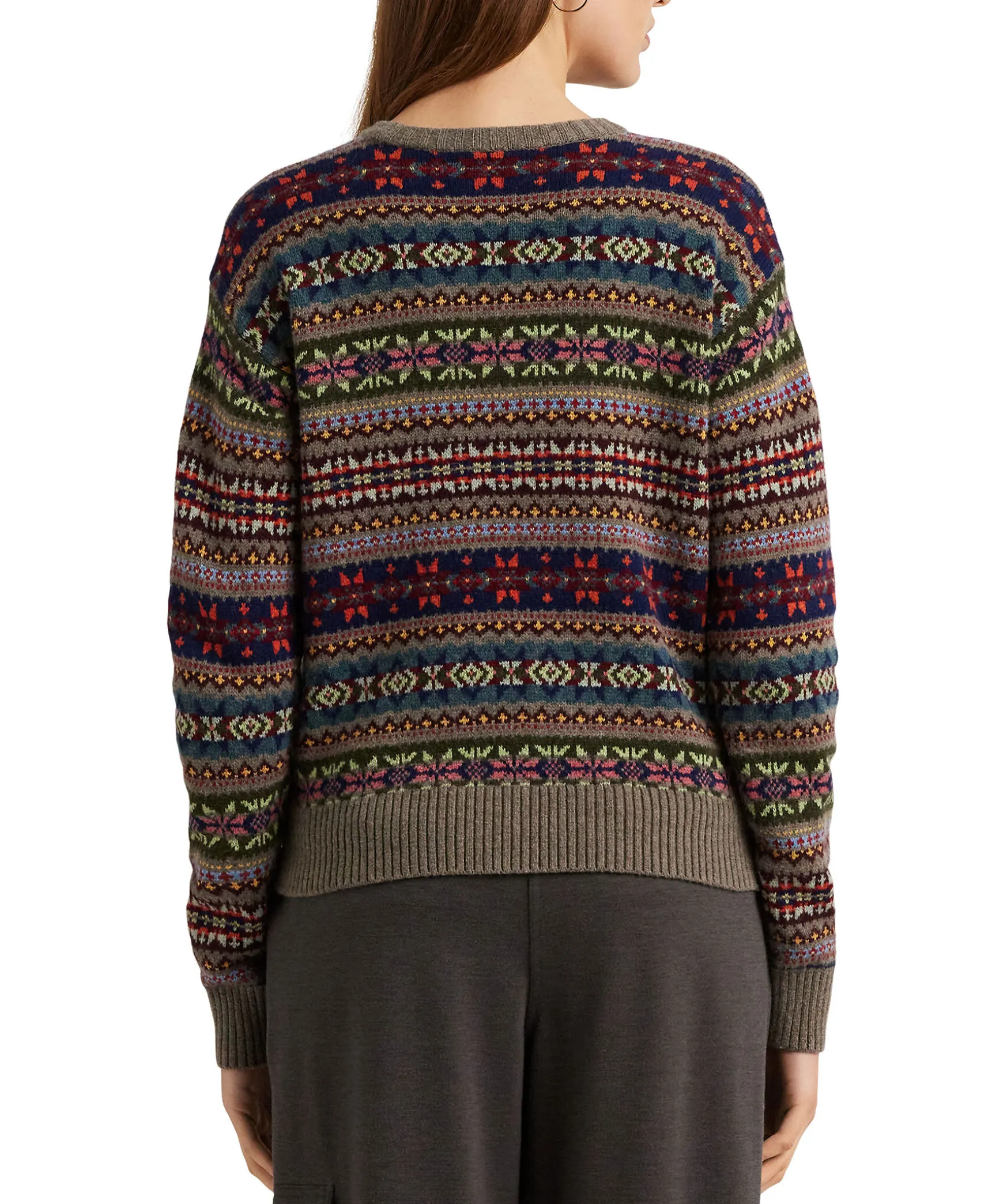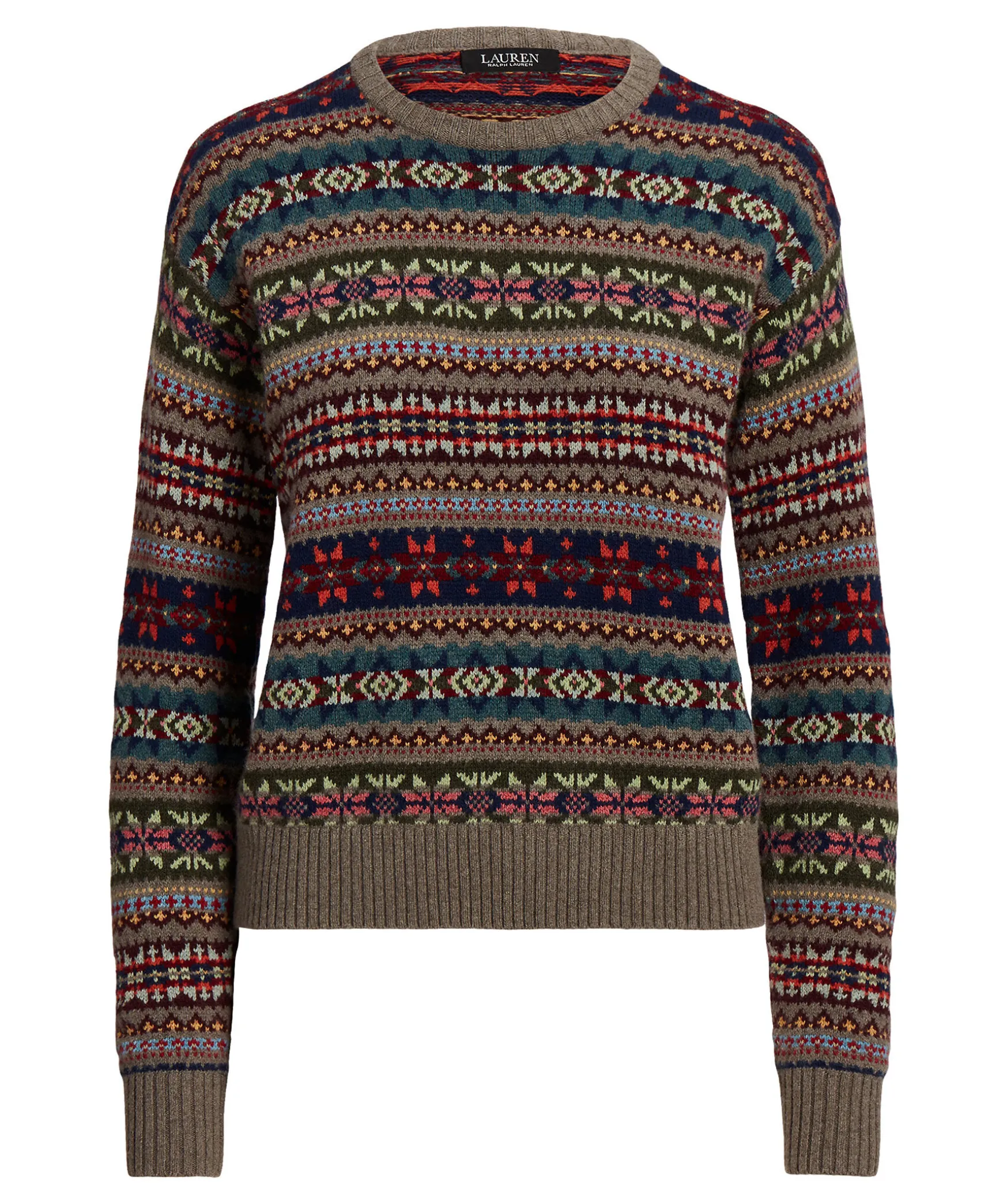 Flerfargad Stickad Troja Fran Lauren Ralph Lauren Med Ett Fair Isle Monster. Gjord I En Ullblandning Och Har En Avslappnad Passform Med Droppade Axlar. Ribbstickade Muddar. Tankt Att Sluta Vid Hoften. Modellen Ar 178Cm Lang Och Har Pa Sig Storlek S.