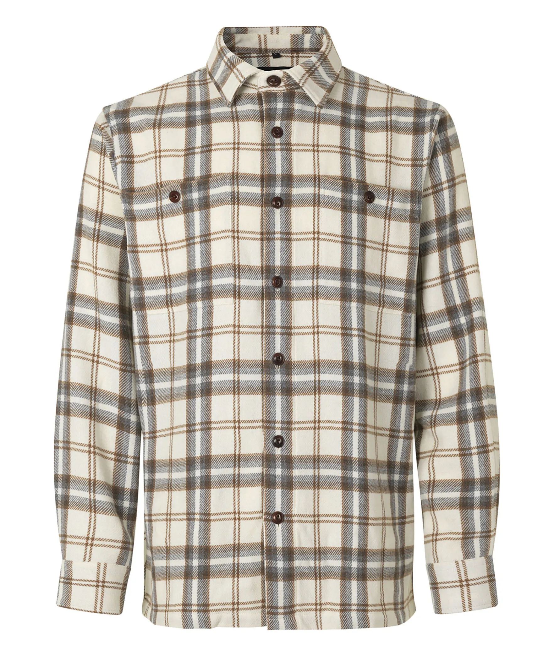 Benvit Skjorta Med Rutigt Monster Fran Mads Norgaard. Gjord I En Ullblandning. Tva Brostfickor Och Cut-Away Krage.