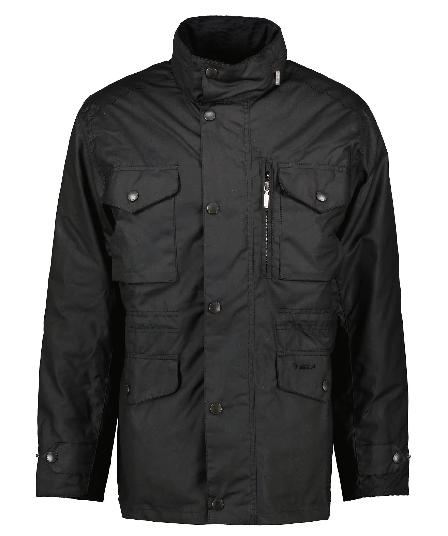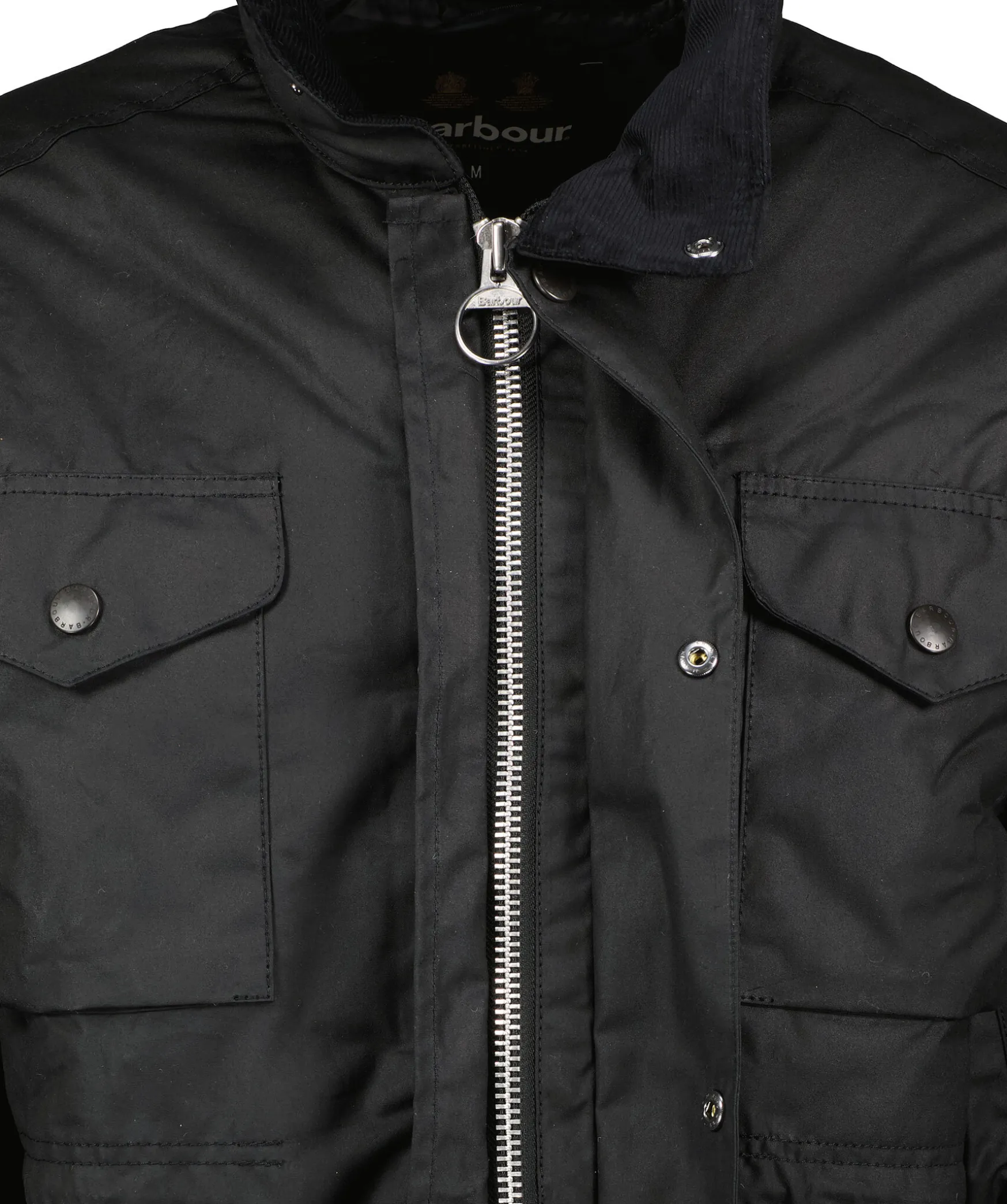 Svart Sapper Wax Jacka Fran Barbour. Subtilt Skraddarsydd, Blandar Robust Funktionalitet Med Ett Enkelt, Smart Utseende. Perfekt For Att Skapa En Utomhusinspirerad Look Och Har En Tryckknapp Framtill, Tva Brostfickor Och Tva Nedre Brostfickor For Praktisk Forvaring. Perfekt For Styling Med Kladda Jeans For Promenader Pa Landsbygden, Den Har Jackan Erbjuder Varme Utan Att Avbryta Stil.
