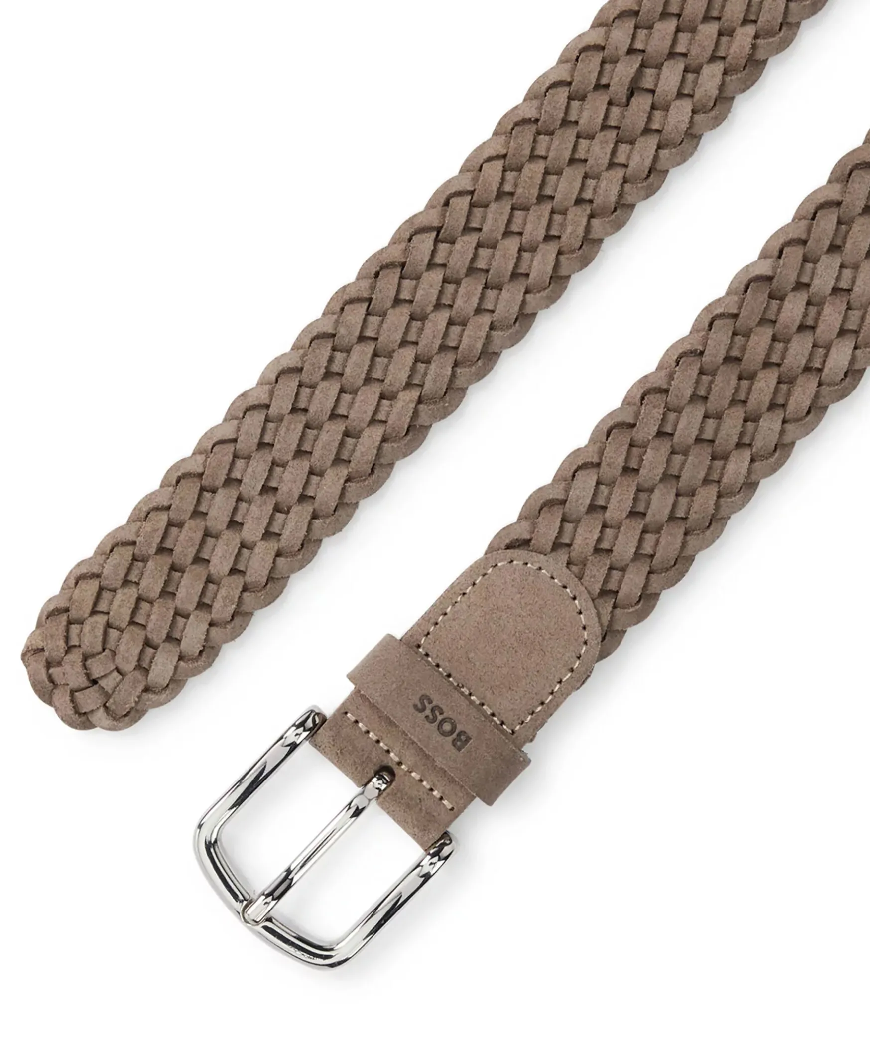 Ett Khakifargat Elegant Balte Fran Boss Black. Saker Med En Markeshallare Och Polerat Spanne. Baltet Ar Tillverkat I Mjuk Mocka For En Rik Effekt. For Basta Passform Rekommenderar Vi Att Du Bestaller Ett Balte En Storlek Storre An Din Midja.