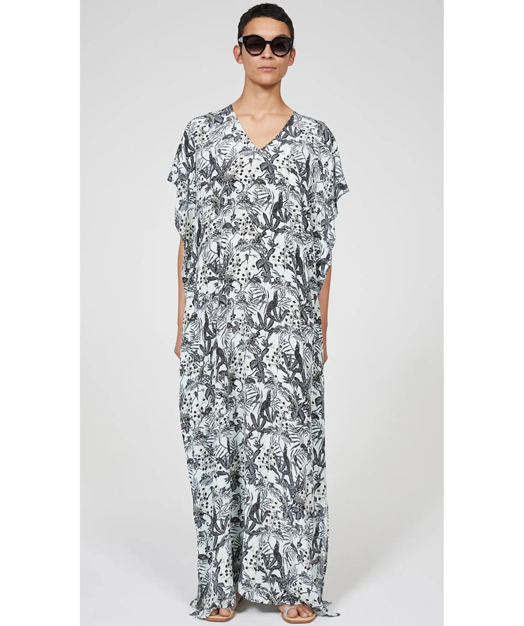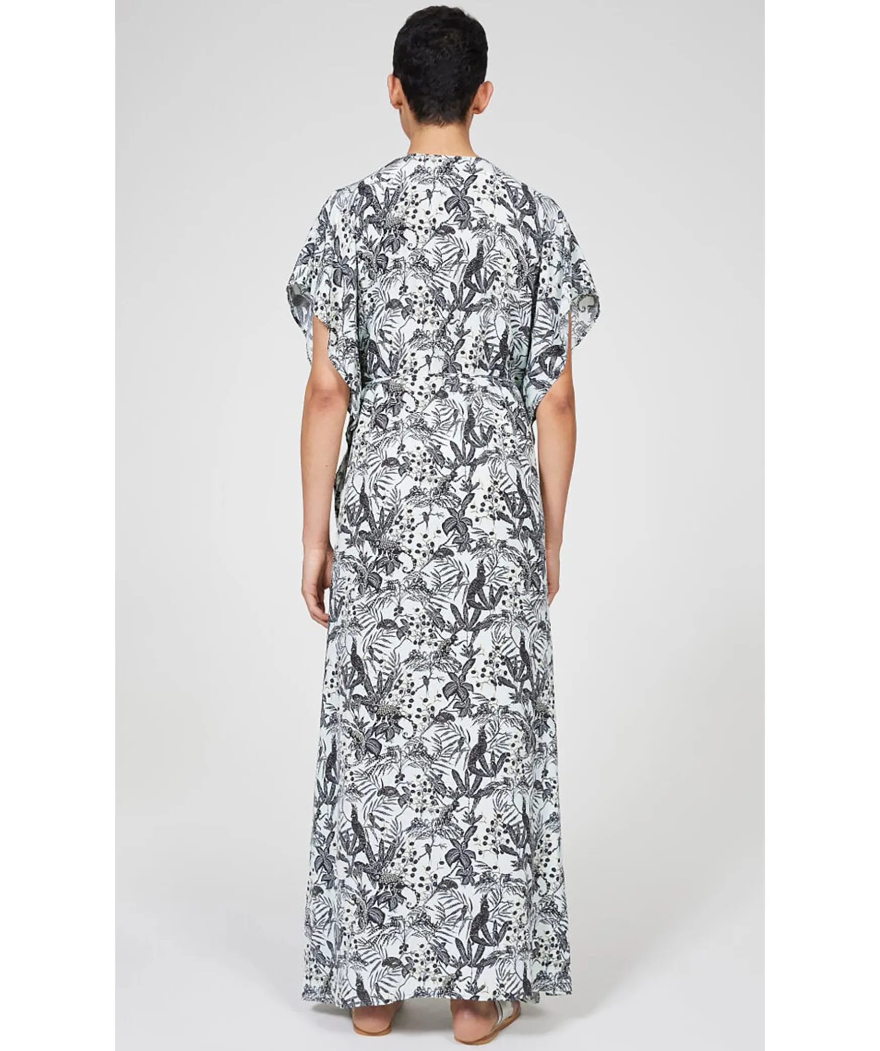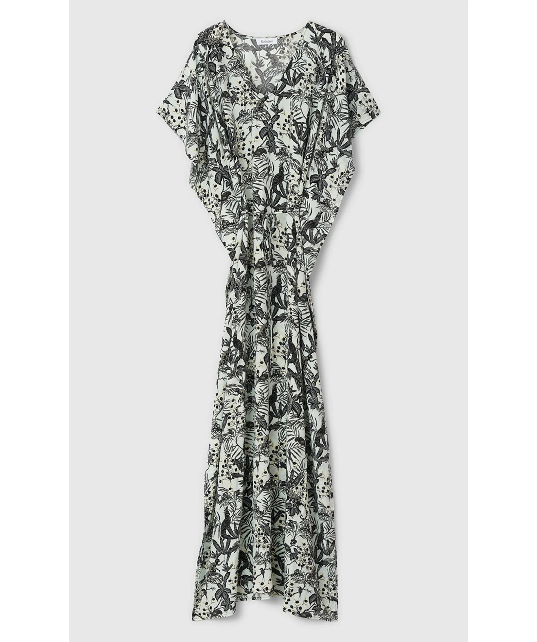 Vit Klanningstunika I Ett Svart Djungelmonster Fran Rodebjer. Tillverkad I Viskosblandning. Balte I Tunnt Skal Och Oppningar I Midjan For Smidig Rorelse. Rena Armar Och Fallkanter For En Polerad Look. Materialet Kommer Fran Hallbart Odlade Och Skotta Skogar.
