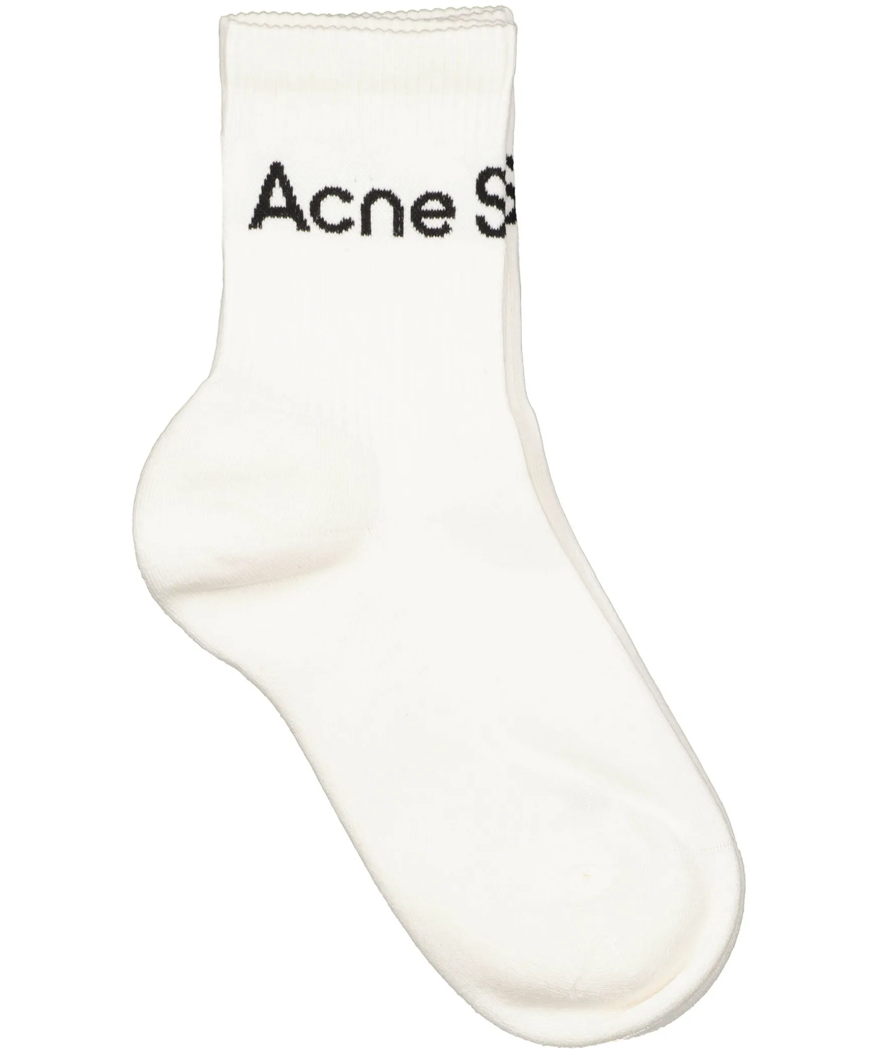 Vita Korta Ribbade Sockar Fran Acne Studios Med Stickad Logotyp I Svart. Tillverkad I Bomullsblandning.