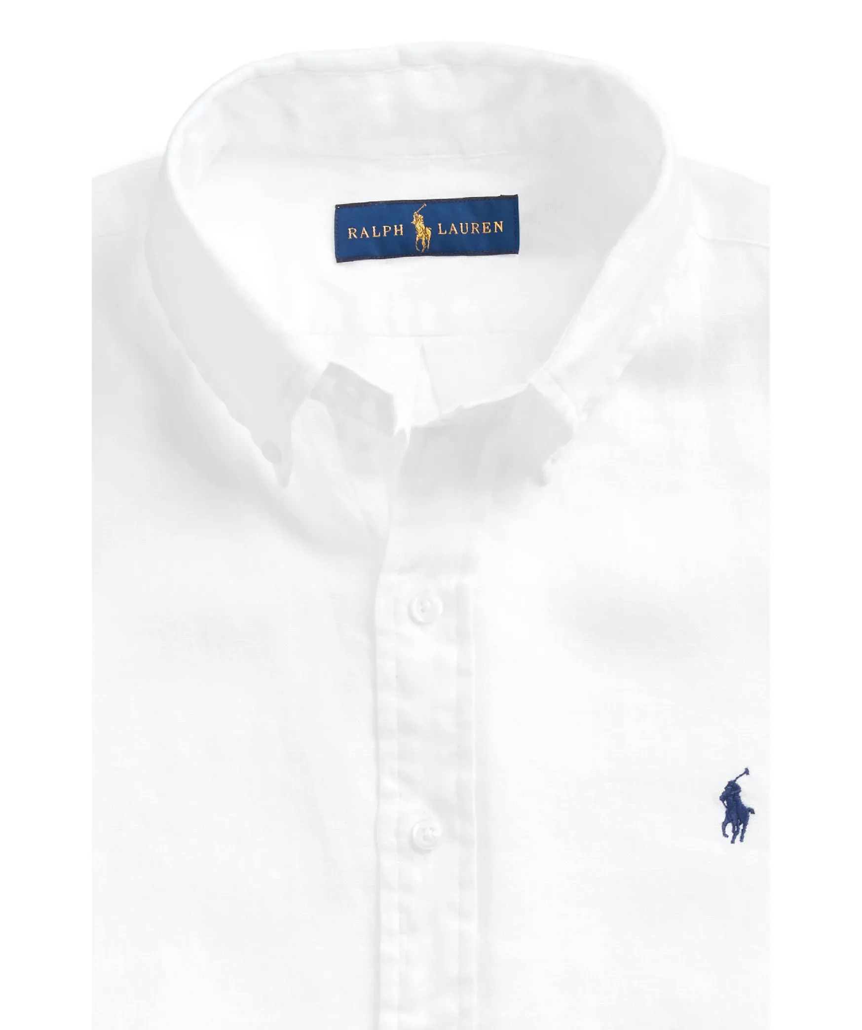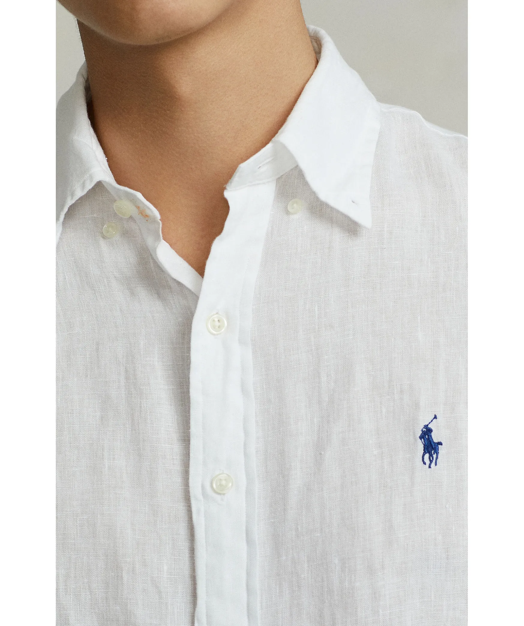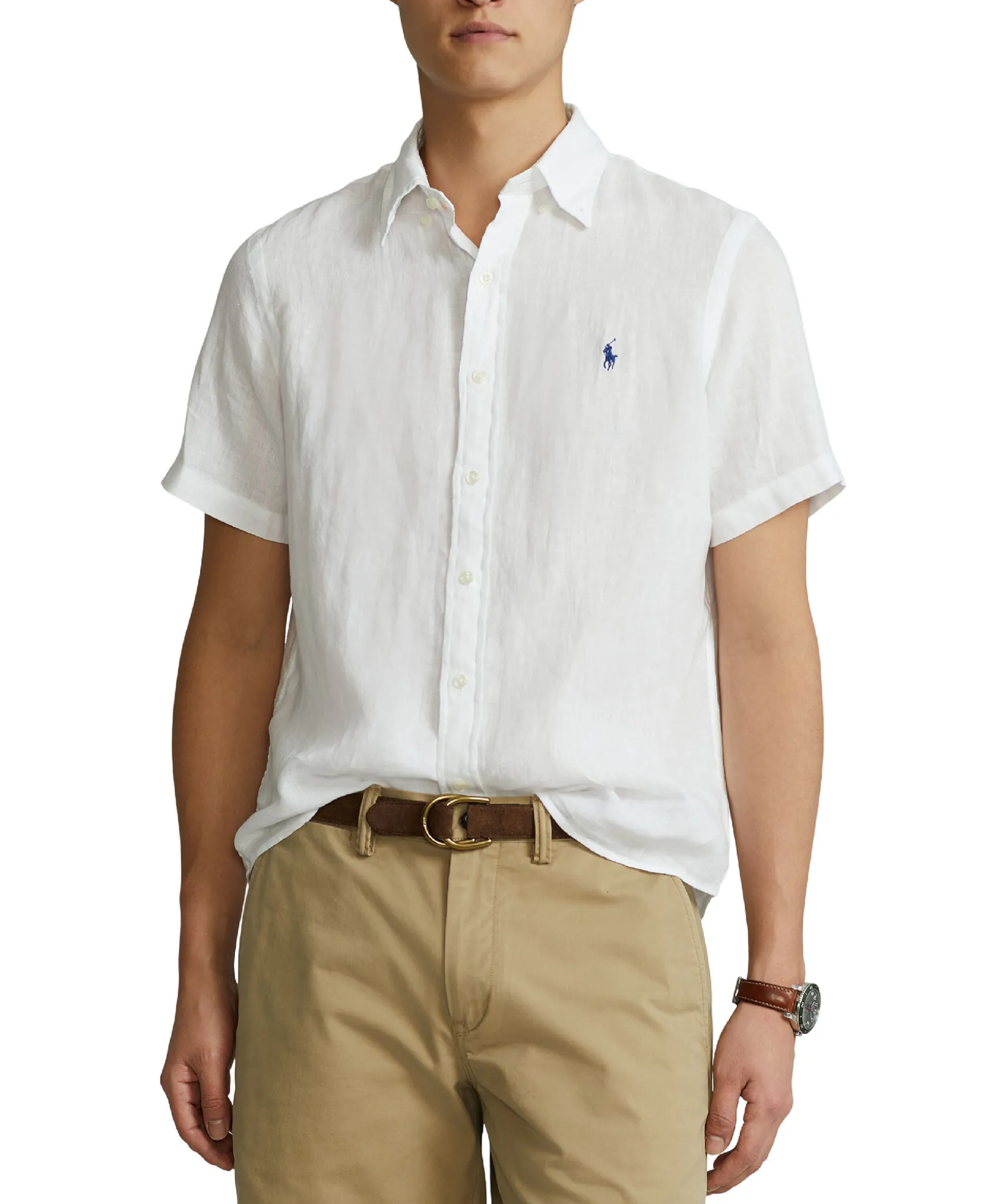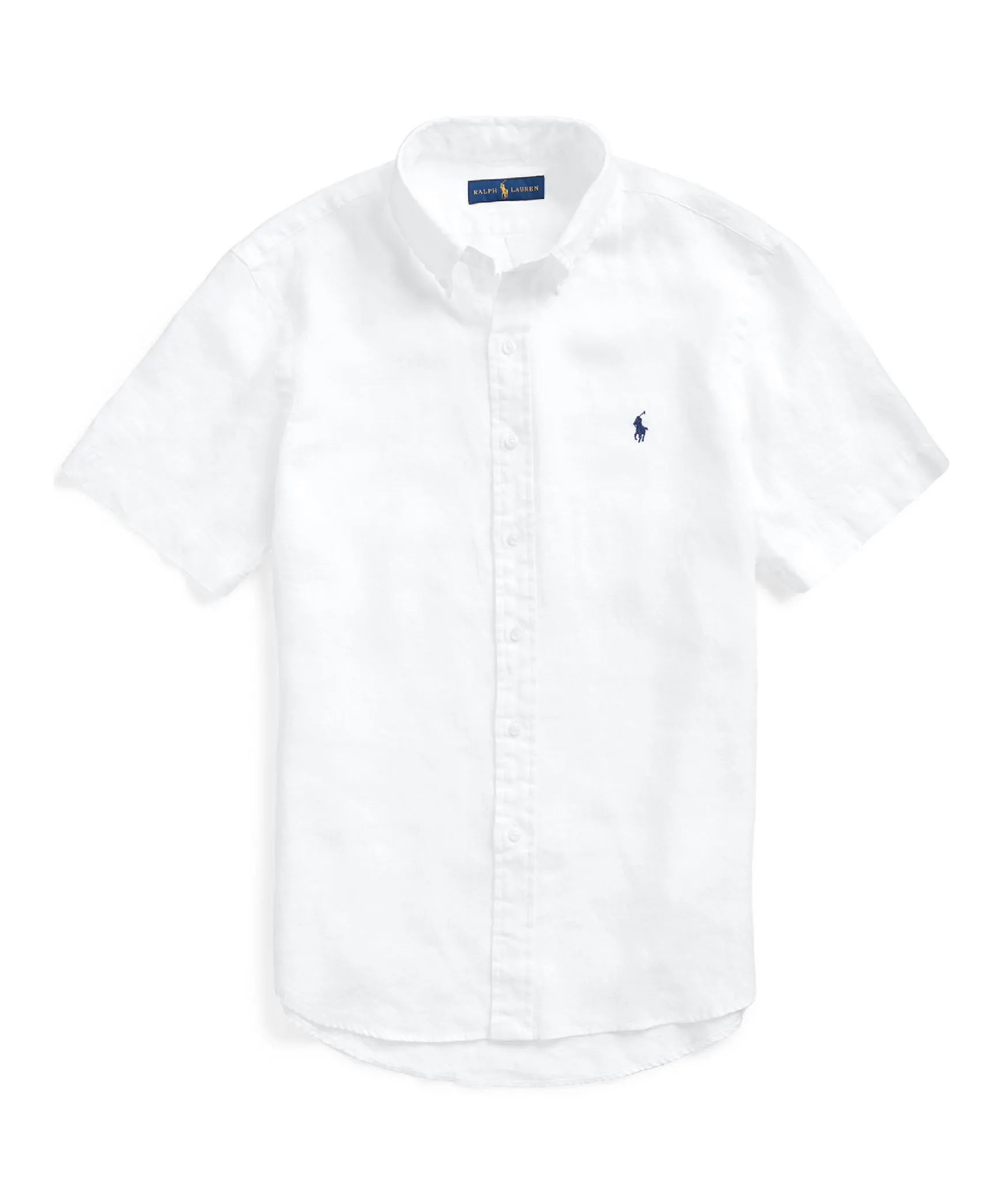 Vit, Kortarmad Skjorta Fran Polo Ralph Lauren. Skjortan Har En Klassisk Passform Och Ar Gjord I Ett Latt Linnematerial. Button Down-Krage Och Broderad Polohast Pa Brostet.