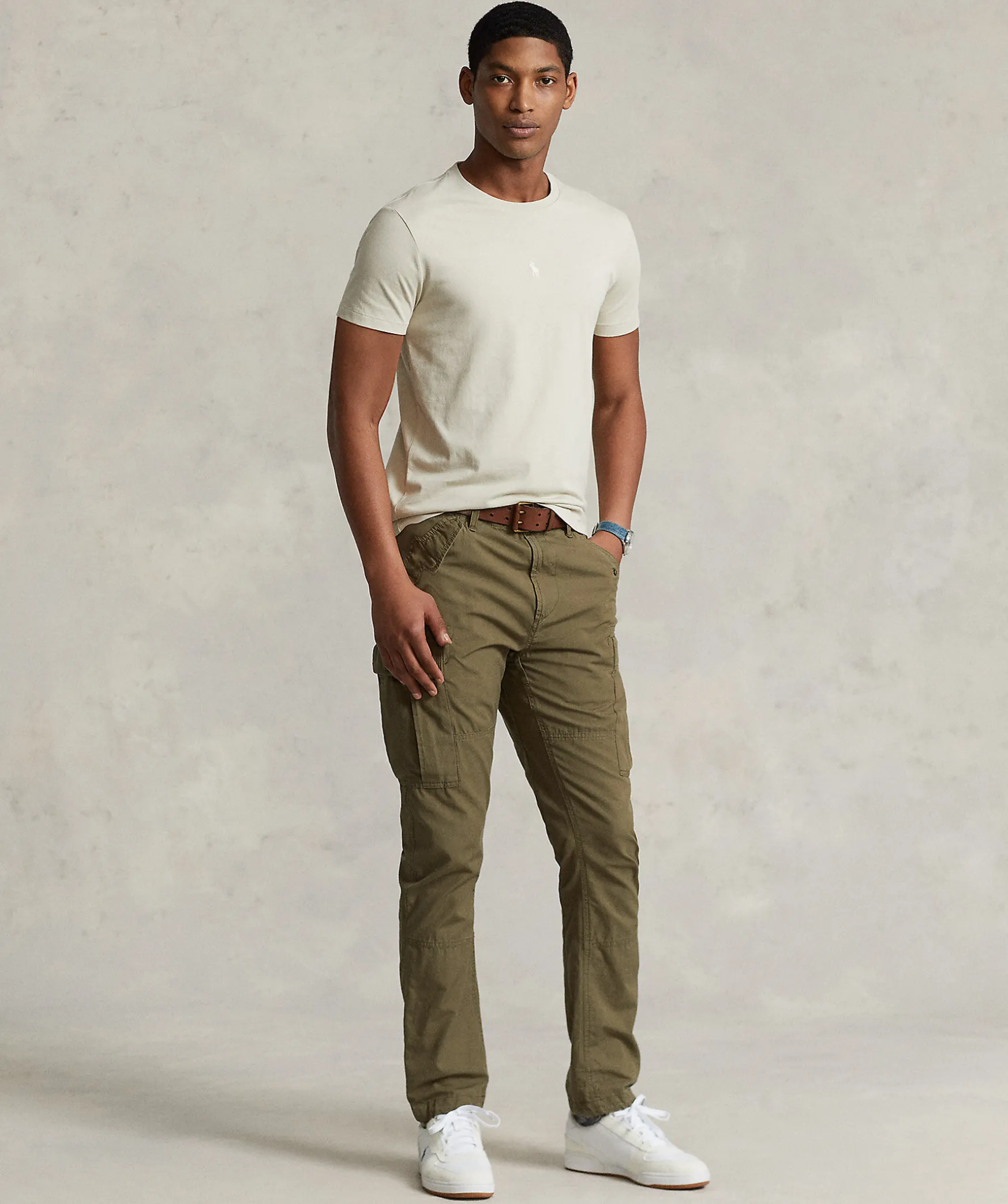 Grabeige T-Shirt Fran Polo Ralph Lauren. Rundad Halsringning Broderad Logga Mitt Pa Brostet. Tillverkad I 100% Bomull.