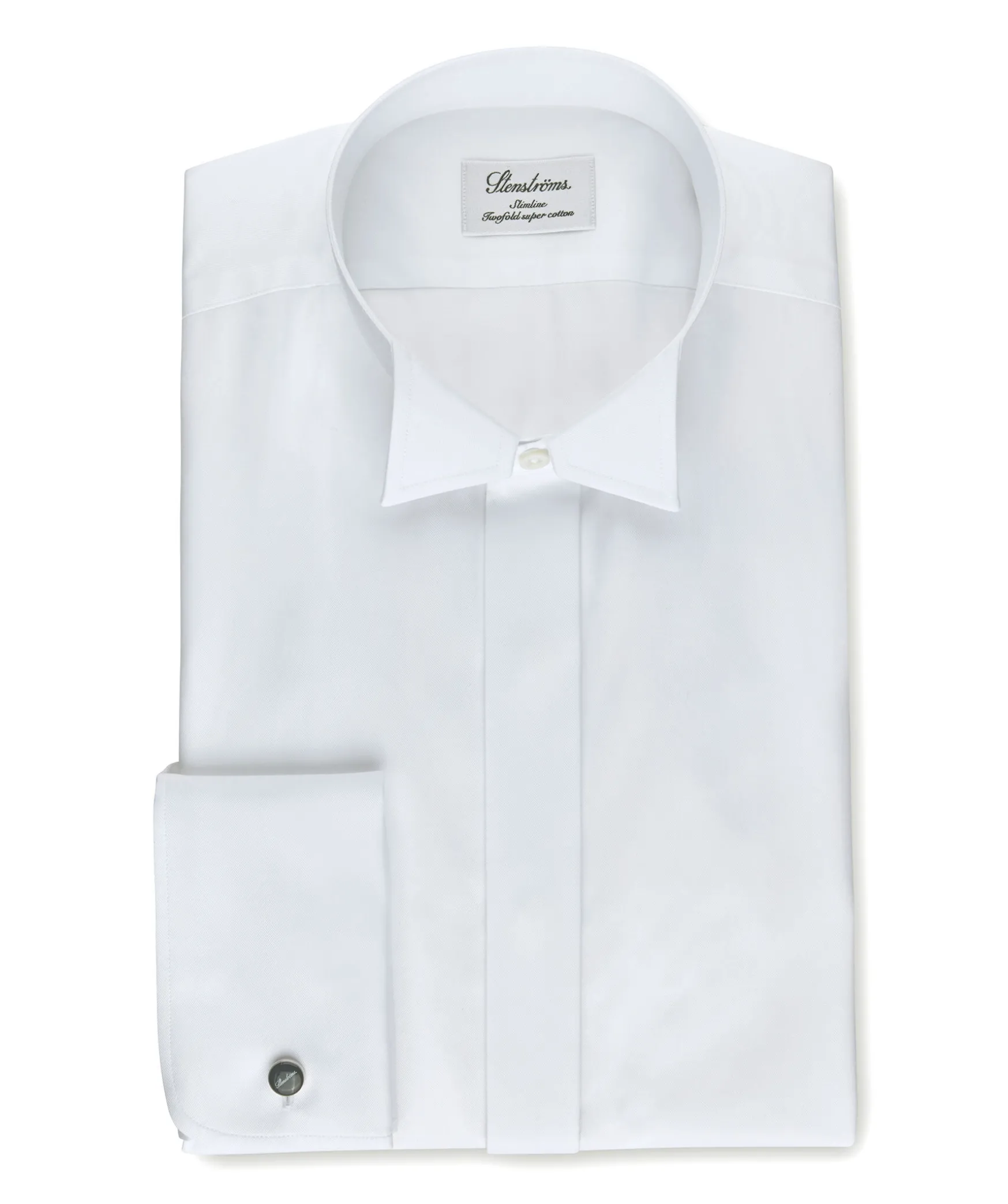 Den Har Eleganta Smokingskjortan Fran Stenstroms Ar Skuren Fran Superior Twill Och Designad For Stil Och Komfort I En Smal Passform. Den Ar Detaljerad Med Dold Knappsla, Dubbla Manschetter Och Parlemorknappar.