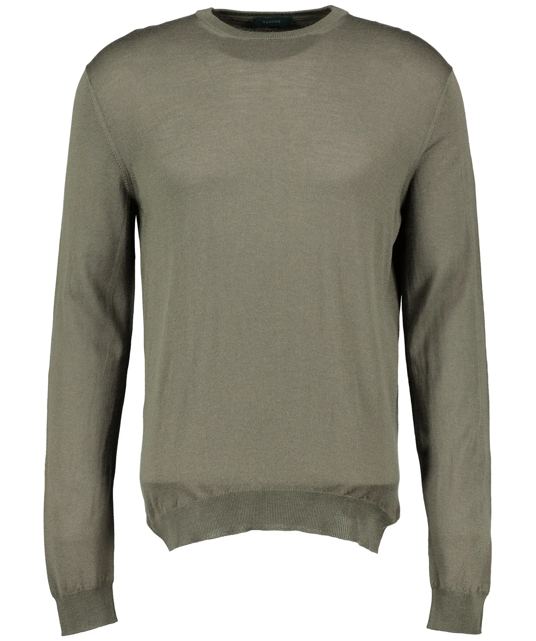 Skogsgron Finstickad Troja Fran Zanone. Rundad Halsringning. Ribbstickad Mudd Vid Arm- Och Plaggslut. Tillverkad I Ullblandning.
