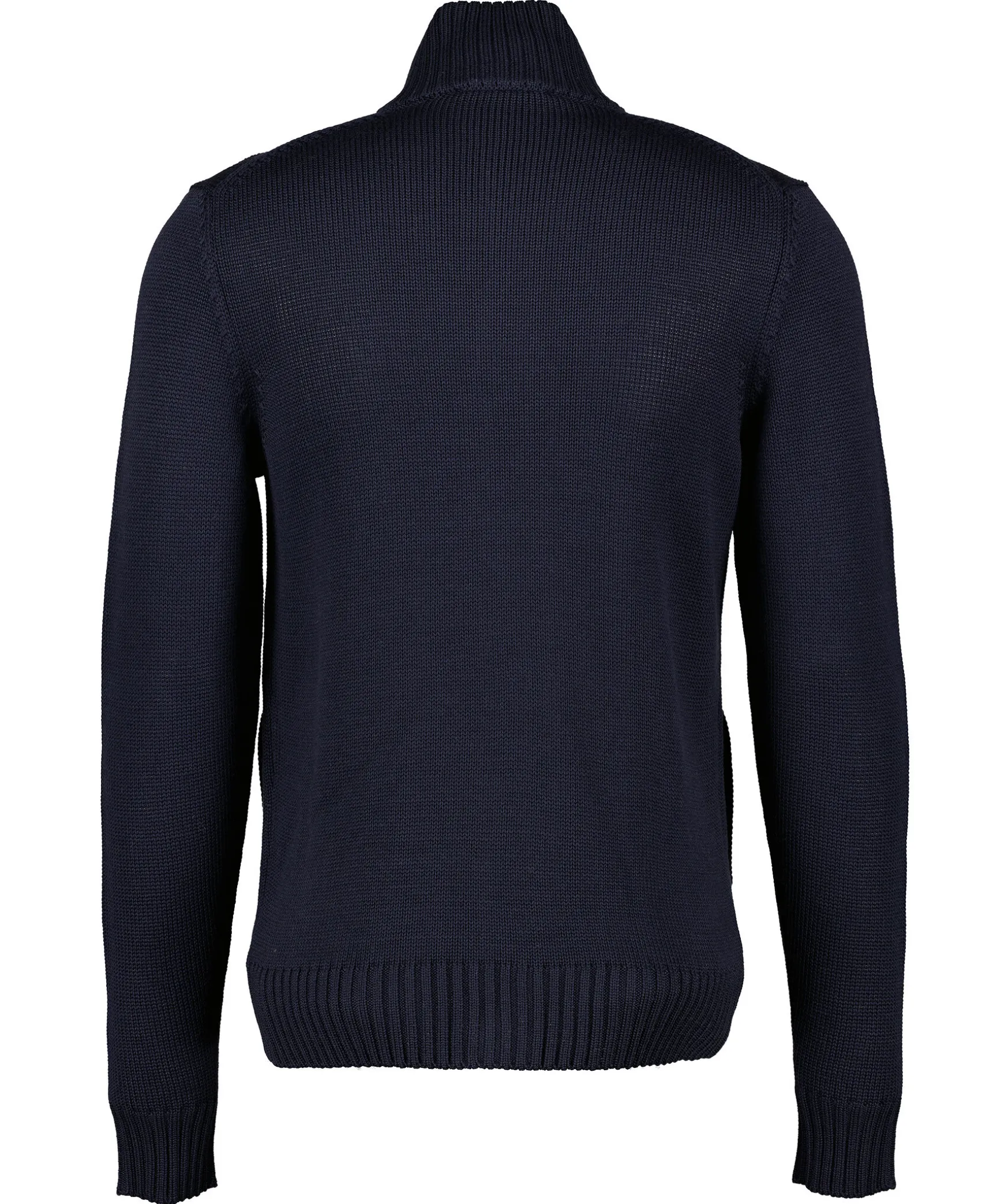 Morkbla Stickad Cardigan Fran Zanone. Stangs Framtill Med Svarta Knappar. Tva Fickor Framtill. Ribbstickad Krage, Muddar Vid Arm- Och Plaggslut. Tillverkad I 100% Virgin Wool.